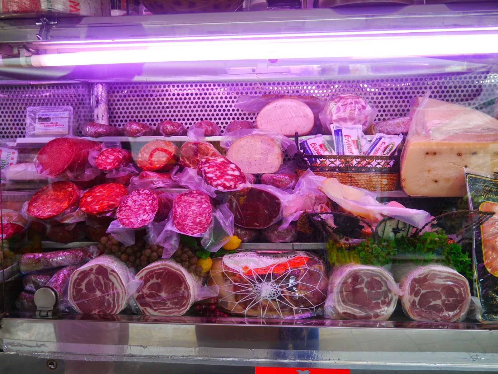 Fromages à volonté : parmesan, pecorino, ricotta et j’en passe, charcuteries à gogo, fruits et légumes tous plus beaux les uns que les autres avec une prédilection pour les poivrons, les tomates et les artichauts, très utilisés dans la cuisine sicilienne.
