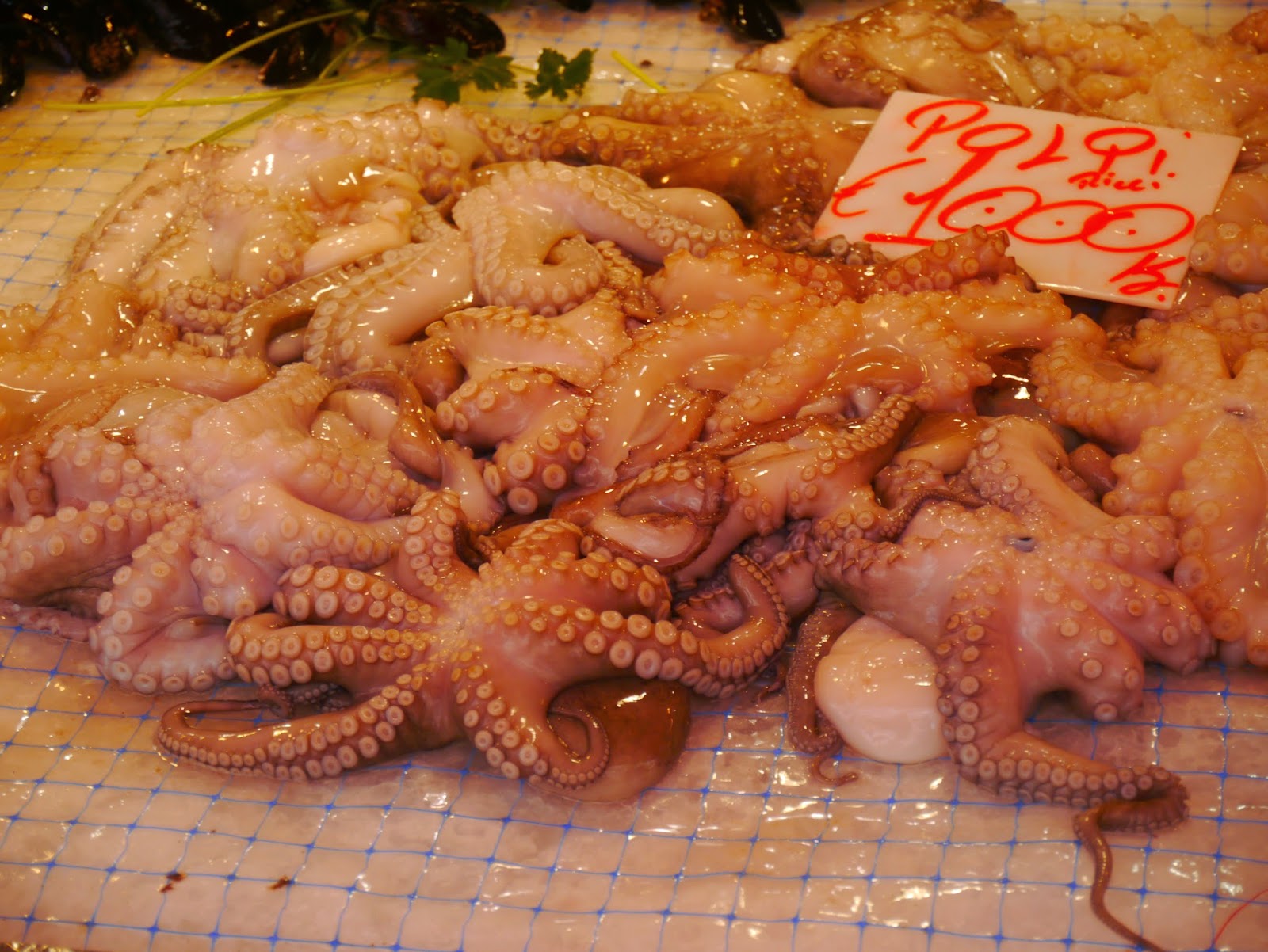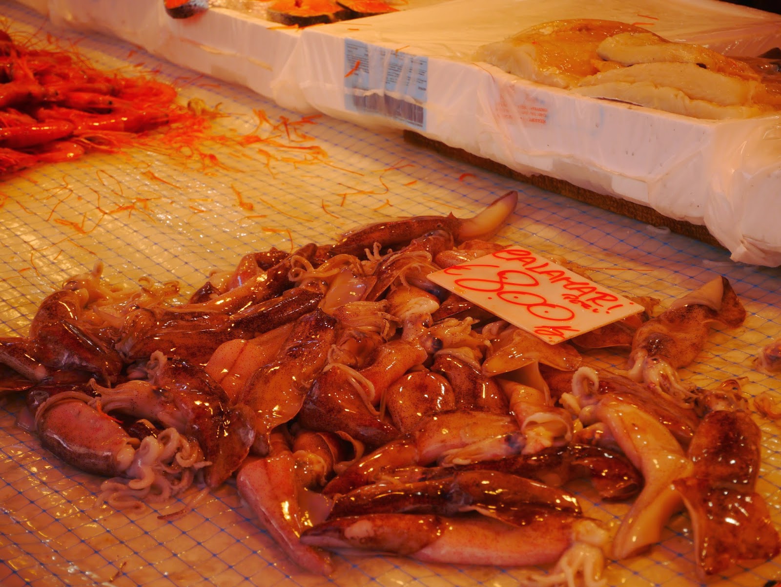 L’espadon, un poisson très consommé en Sicile, les dorades, les crustacés, des énormes gambas, des allevins !!