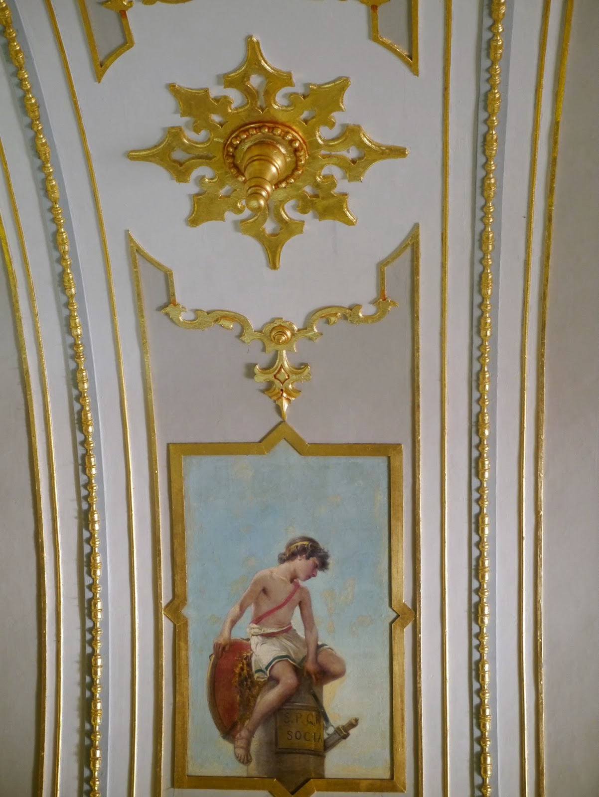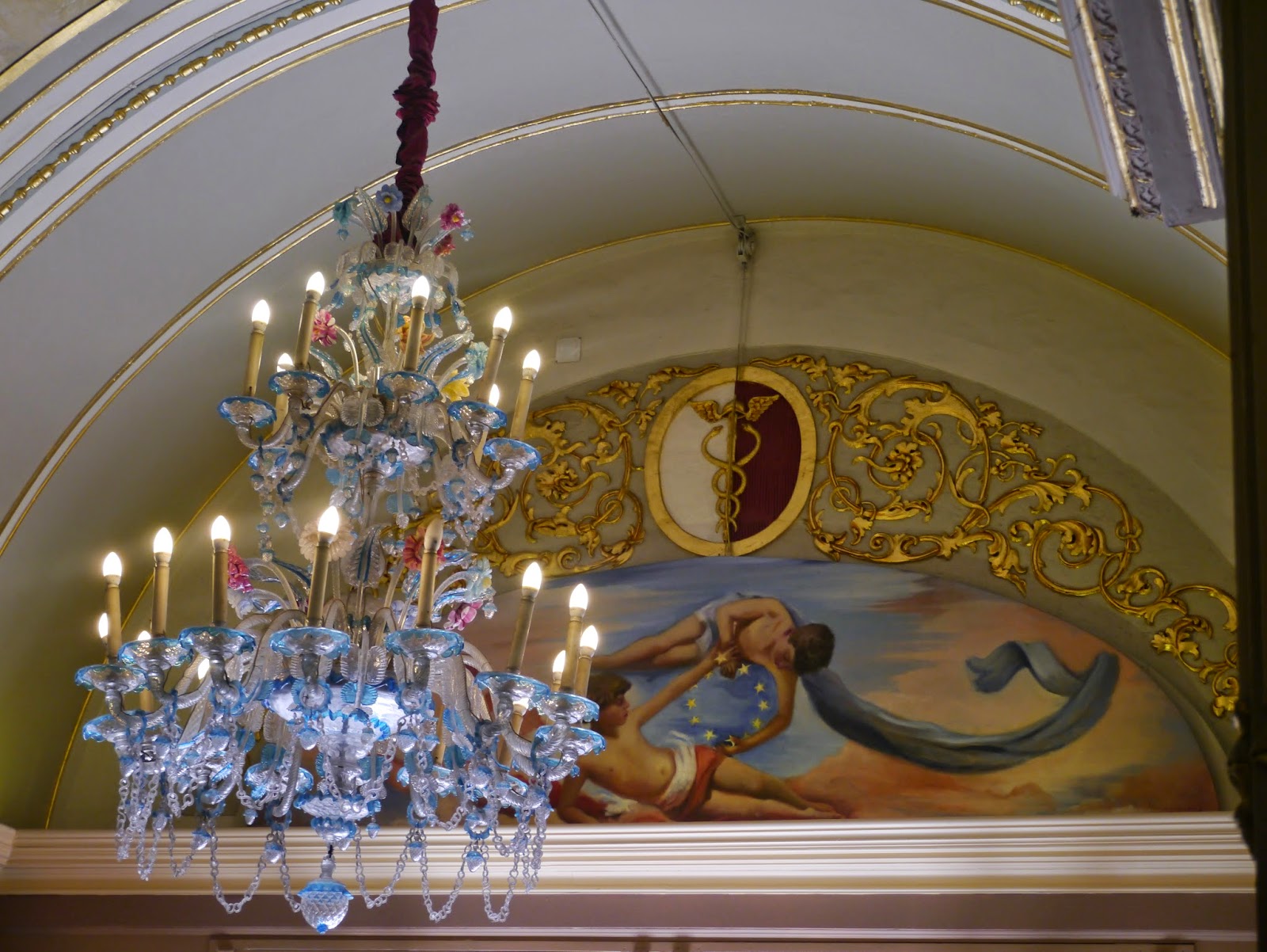 L’intérieur de ce café, les serveurs aux cravates jaunes, son magnifique lustre ainsi que les peintures de son plafond voûté en font déjà un endroit qui vaut le coup d’œil.
