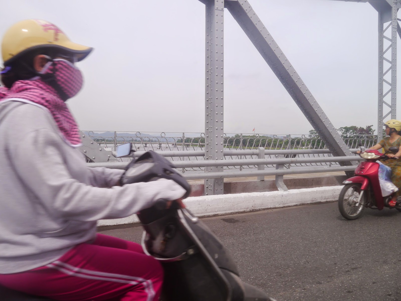 | motos sur le pont d’Avignon, euh non d’Hué |
