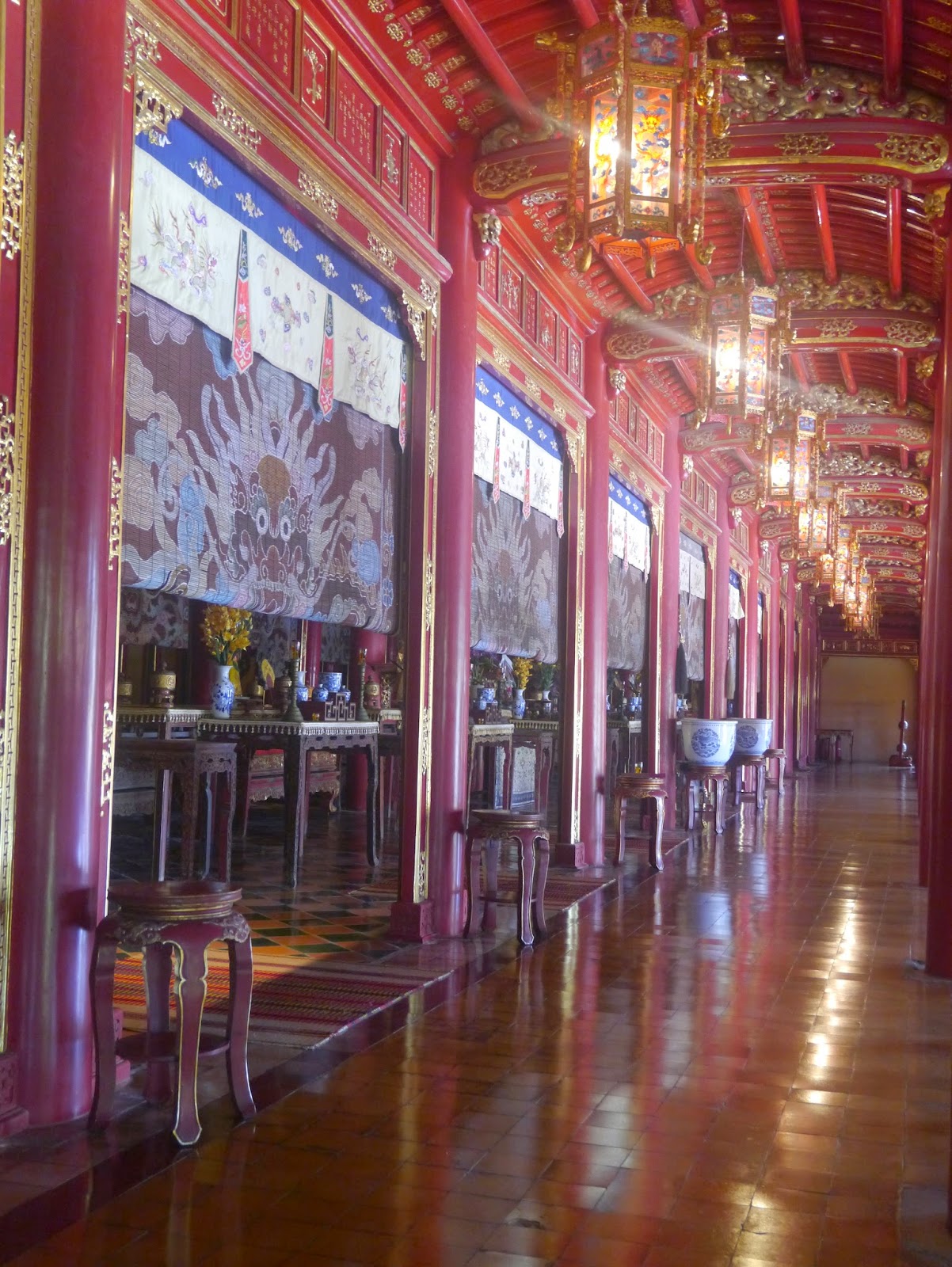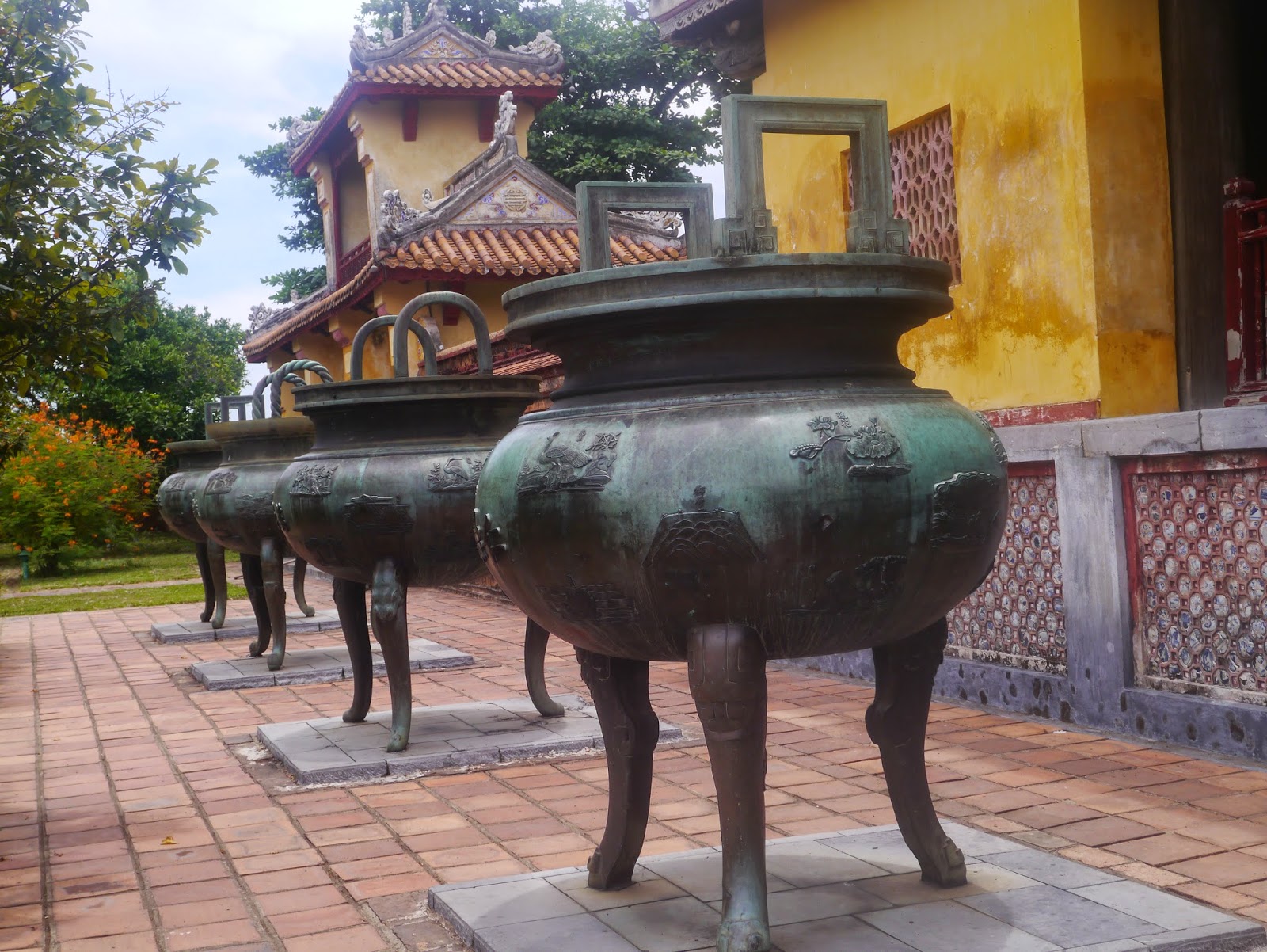 Depuis ce temple, j’avais une très belle vue sur la cour précédant le Pavillon des Splendeurs, l’édifice le plus haut de la citadelle, où se trouvent 9 gigantesques urnes en bronze, gravées de différents symboles, symbolisant le règne de chacun des empereurs de cette dynastie.