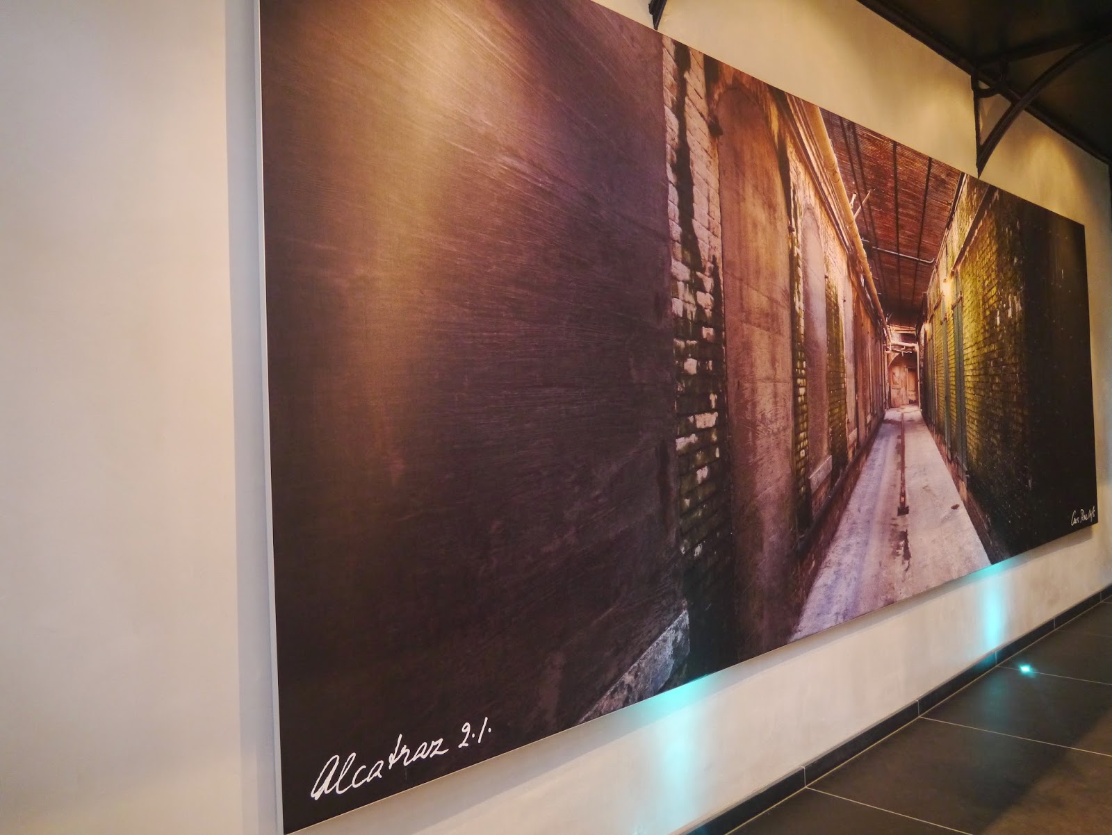 Et que dire des volumineux lustres blancs, des petits salons aménagés tout le long de cette allée principale, des souvenirs datant de l’époque carcérale ( telles que des clés ou des képis de gardiens), des barreaux aux fenêtres ou encore de ce tableau représentant la célèbre prison américaine d’Alcatraz d’où l’on ne s’échappe pas ?