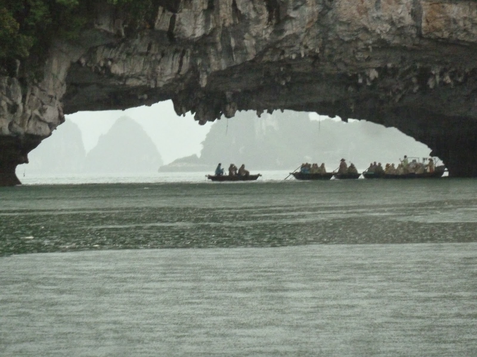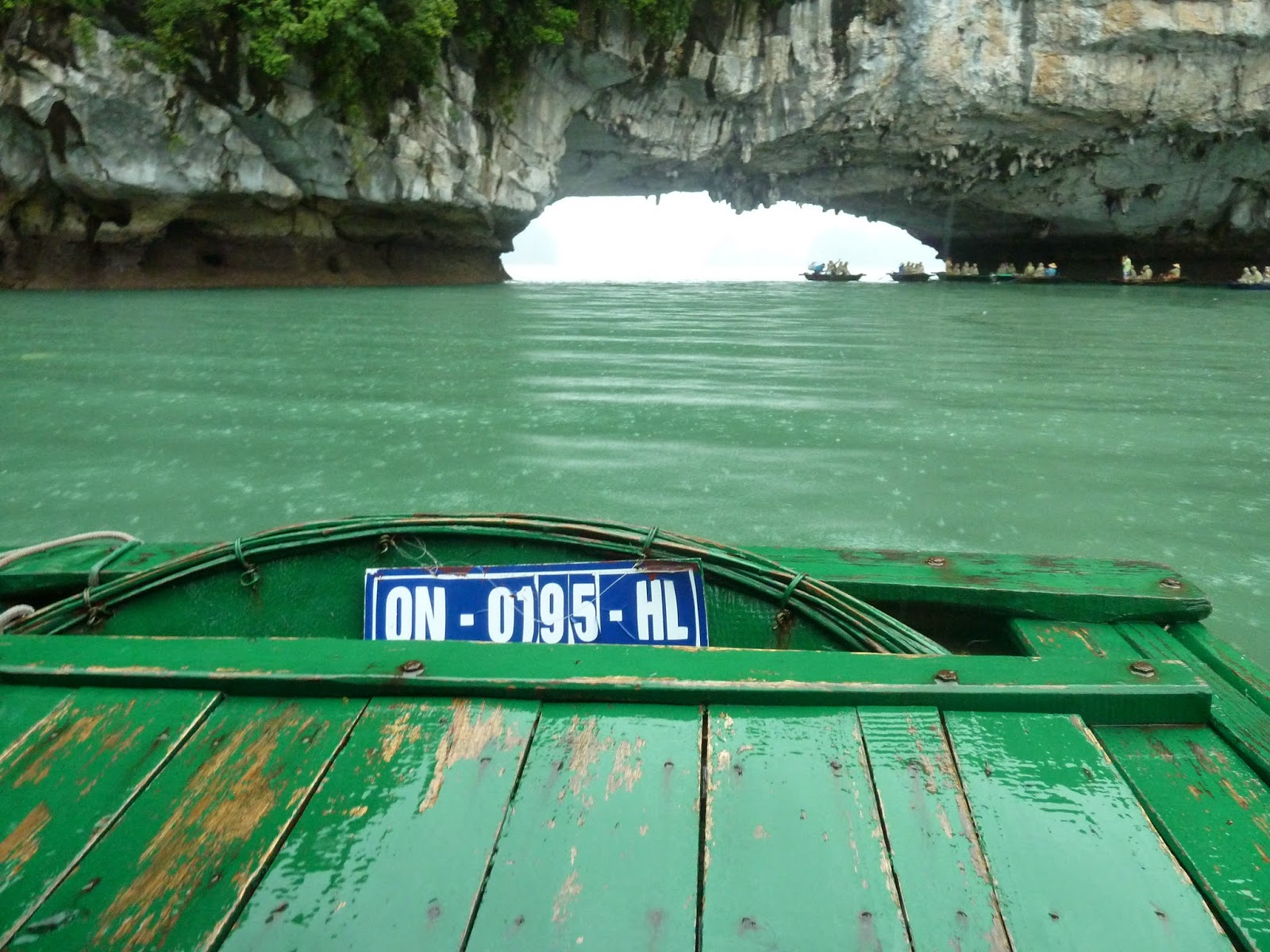 Malgré la pluie diluvienne, qui fut ma compagne de voyage durant  toute cette excursion, j’ai été émerveillée par cette nouvelle promenade au milieu des pitons rocheux et le passage de la barque sous les superbes arches naturelles !