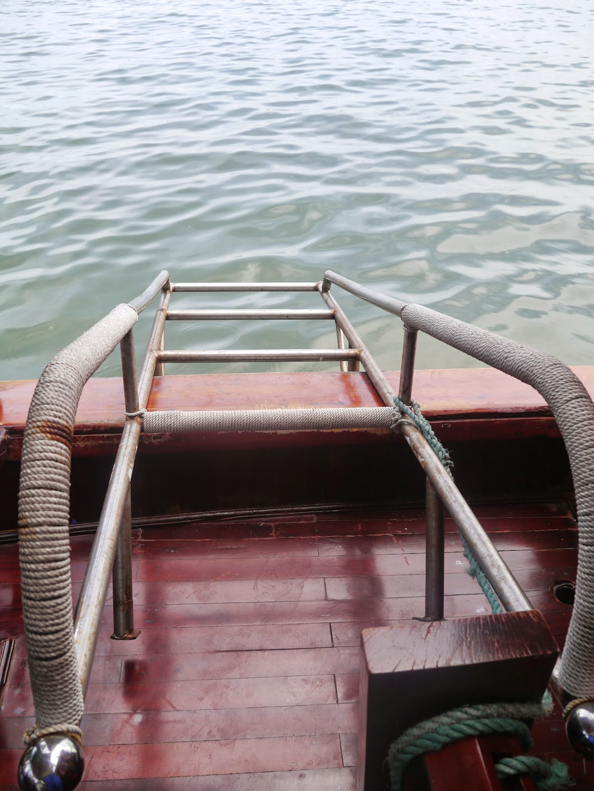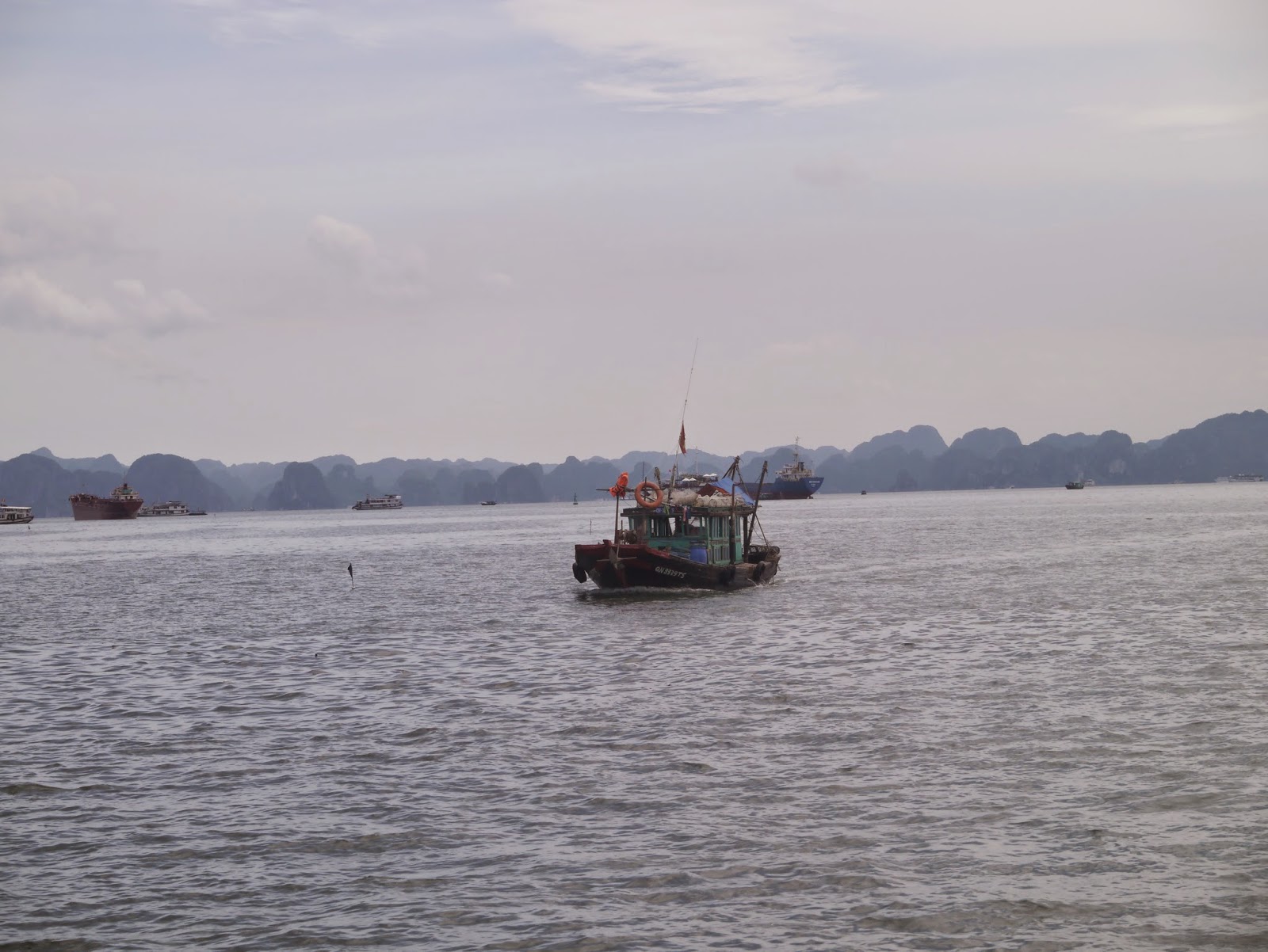 Sous un ciel bleu où le soleil irradiait, j’ai pu assister à un balai incessant de jonques et gros bateaux, qui rentrant à quai avec son lot de touristes, qui se dirigeant vers la baie .
