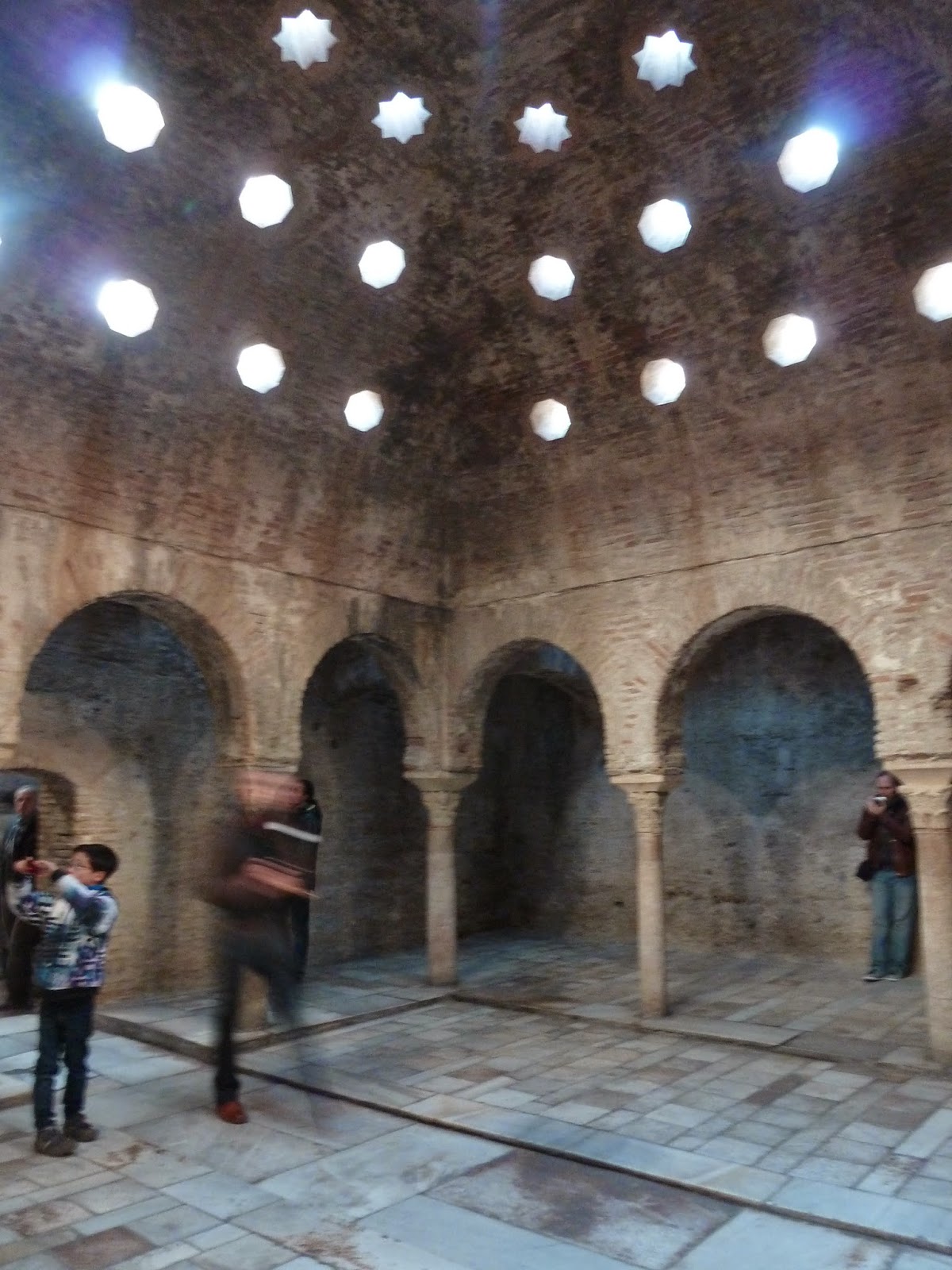 Vous serez surpris par l’ambiance régnant dans le souk Alcaiceria, situé aux abords de la cathédrale, par les gros jambons pendant au plafond des cafés ( pratique commune à toutes les villes d’Espagne, du moins celles où je suis passée) ou encore par les arcades et la voûte étoilée des bains arabes de la ville.