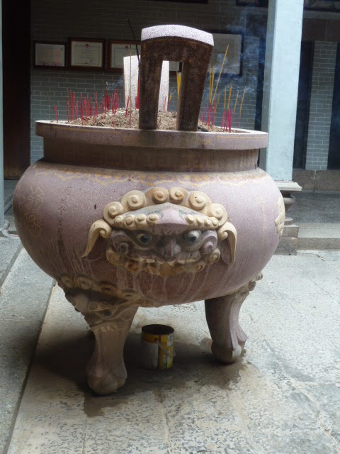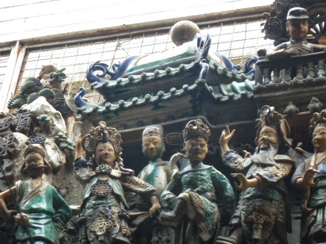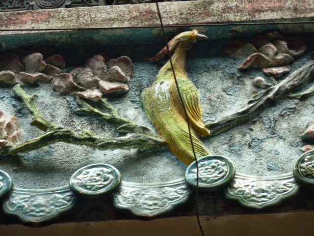 Enfin à Thien Hau, j’ai également été subjuguée par les superbes frises, visibles pour peu que l’on consente à lever un peu la tête, et les sculptures qui ornent le temple.