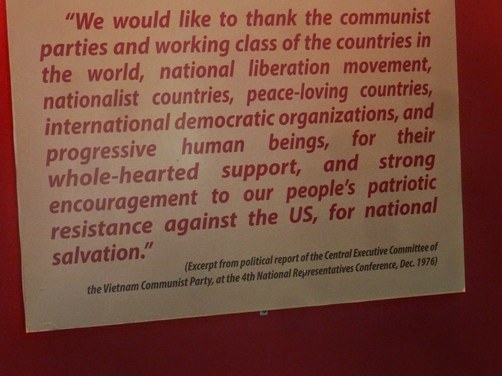 Rarement un édifice culturel ne m’aura autant émue ! Si son actuelle dénomination à savoir « Musée des Vestiges de la Guerre » peut paraître floue quant au contenu que le touriste y trouvera, celle qui a prévalu jusqu’au début des années 1990, soit jusqu’à la normalisation des relations diplomatiques avec les USA, était quant à elle très explicite.