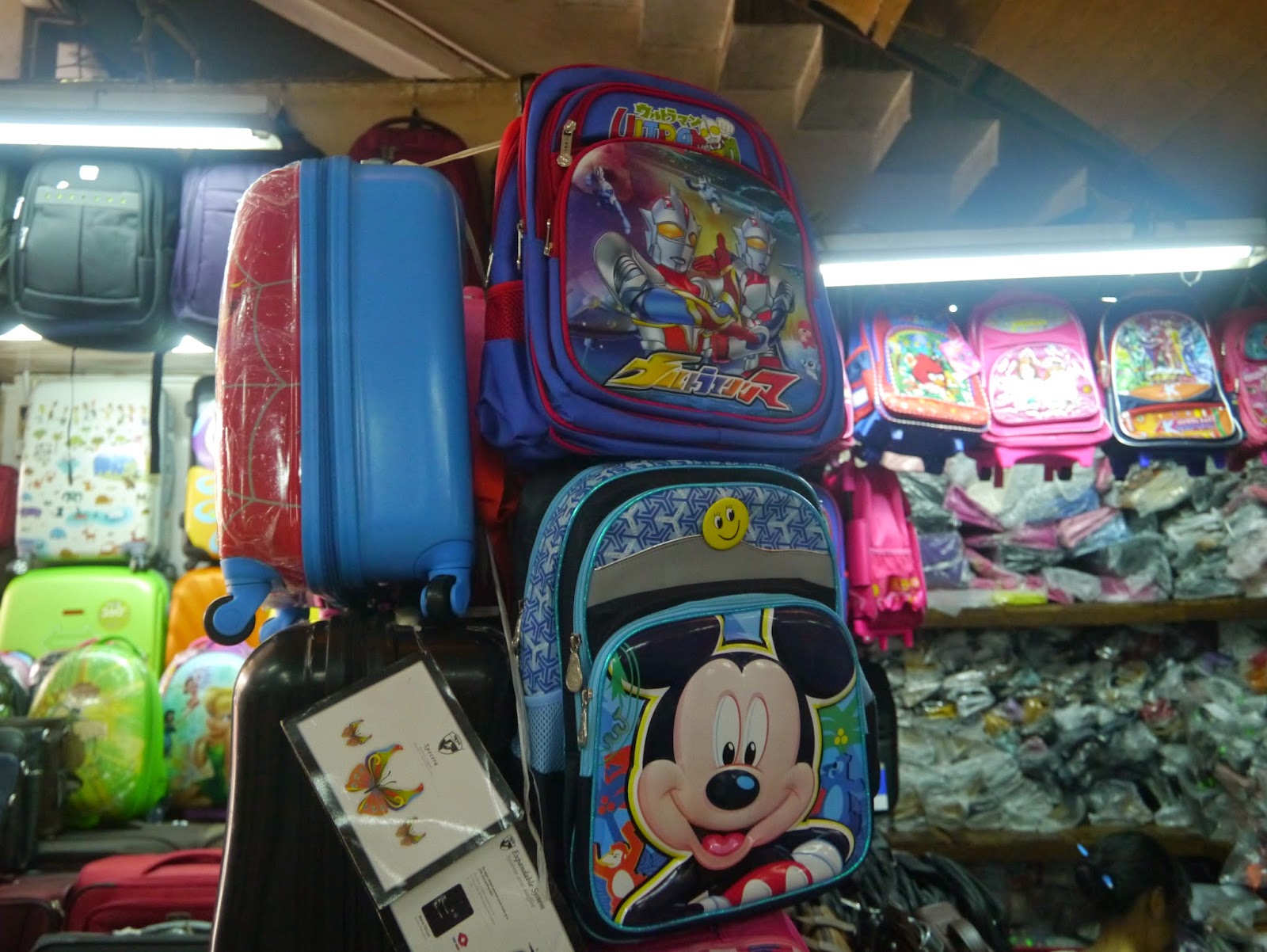 Ainsi, au gré des allées arpentées, j’ai découvert des échoppes vendant chaussures, sacs, cosmétiques, vêtements et accessoires contrefaits, quincaillerie, valises, fournitures scolaires ou encore tissus.