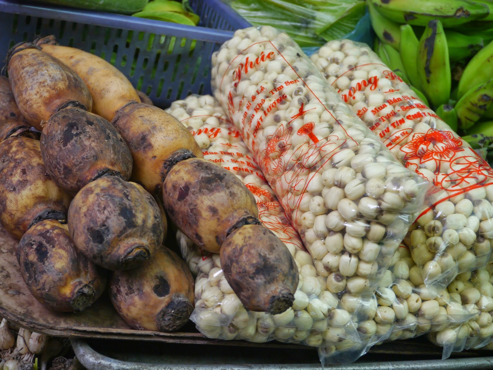 Étals de fruits et légumes, connus ou non. Paniers débordant d’odorantes et colorées épices. Stands proposant à la vente une diversité de fruits sec et de pâtes de fruits,  des nids de salangane, cette espèce d’hirondelle, dont les « demeures » sont très prisées pour réaliser les soupes vietnamiennes ou encore des ailerons de requins.