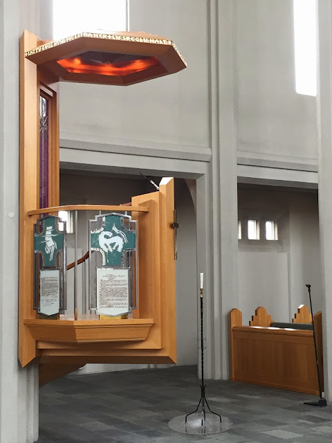 En effet, outre son étonnante façade extérieure, l’imposante statue du Viking (premier européen à avoir foulé le sol américain) qui trône sur son parvis et son joli orgue, j’ai apprécié pouvoir me rendre à son sommet, grâce à un ascenseur, où une vue magnifique sur la capitale, depuis le clocher, s’offre aux regards curieux.
