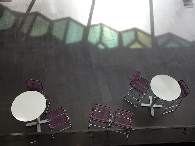 Ceci étant, j’ai, dès le premier coup d’œil, été séduite par l’architecture de l’Harpa, l’emploi du verre, les constructions géométriques, les oiseaux suspendus, les tableaux et œuvres d’art qui se laissent découvrir au fil des couloirs, la vue qui y est offerte sur les alentours ainsi que son agréable café.