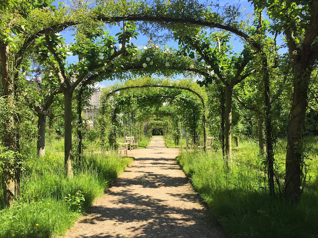 Même si la saison des roses venait à peine de débuter, me balader sous les tonnelles du verger roseraie, où des mariés prenaient d’ailleurs quelques photos, a été une jolie, romantique et bucolique promenade.