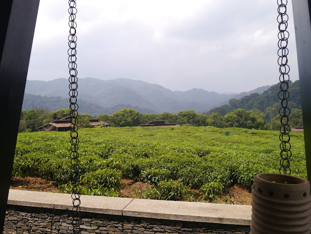 panoramas sur les champs de thé depuis la terrasse extérieure du restaurant