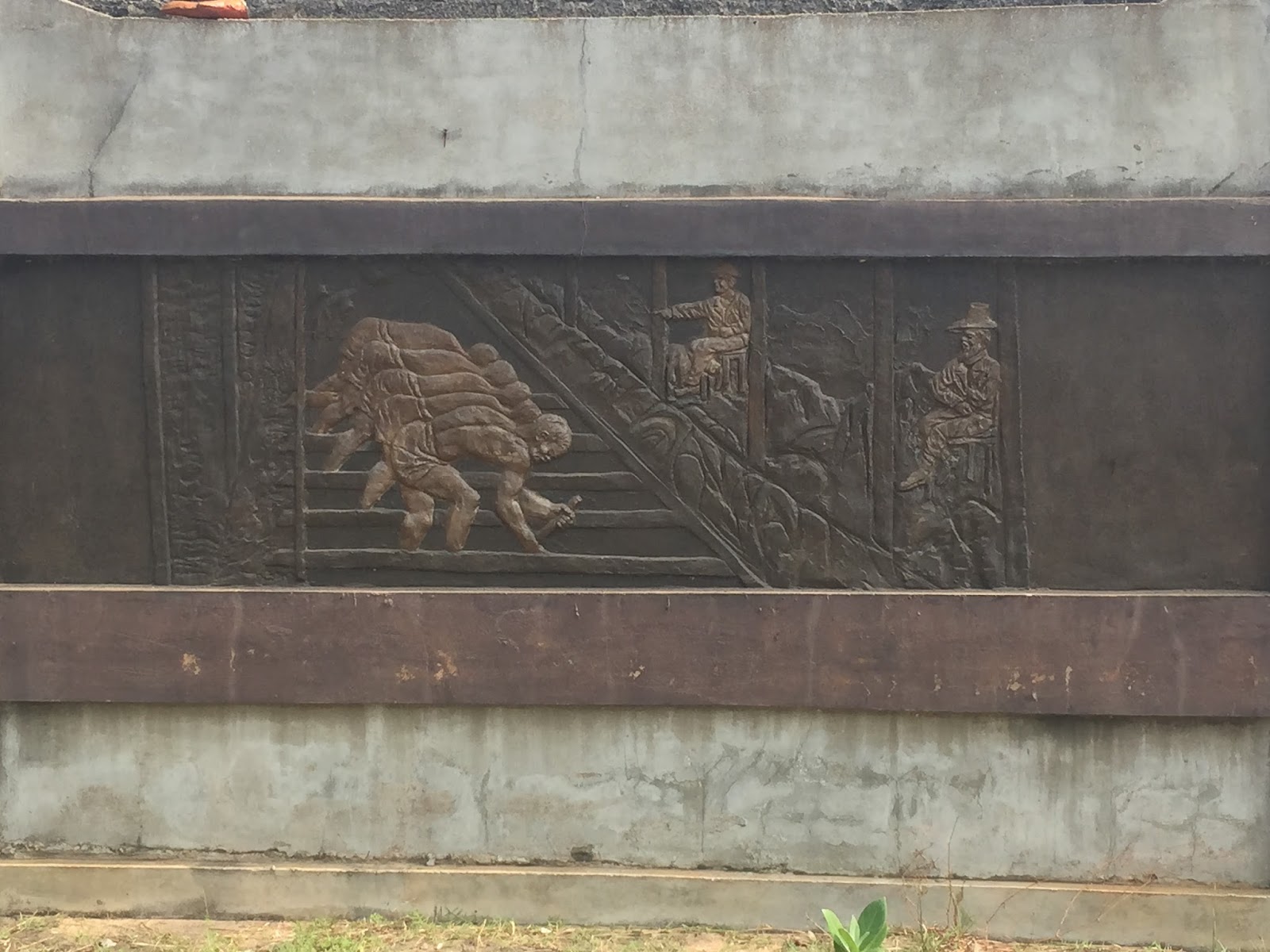 Le mémorial est, quant à lui, constitué d’ une stèle, haute de plusieurs mètres, sur laquelle sont représentées des scènes racontant l’esclavage à Ouidah.