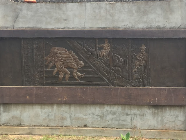 sculpture dans la ville de Ouidah qui figure entre autre des captifs entravés