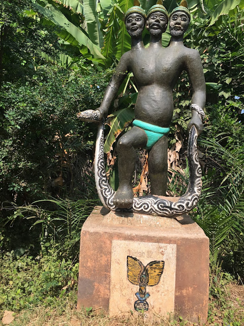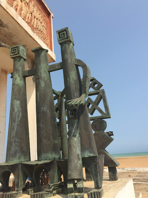 J’ai ainsi été impressionnée par ces grandes statues d’Amazones, ces symboles de dieux vaudou ainsi que ces représentations des rois d’Abomey (dont la très active participation  dans la traite ne souffre pas la discussion), se succédant de part et d’autre de la route jusqu’à à la monumentale porte de Non Retour, dernière étape  de la route des esclaves.