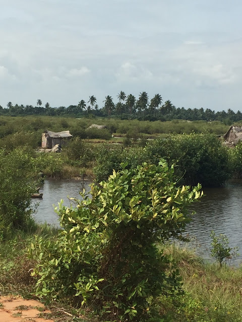Puis vient le temps de la découverte des impressionnantes sculptures (réalisées, pour la plupart, par, feu, l’artiste béninois Cyprien Tokoudagba, dont je vous parlerai plus loin) qui jalonnent cette route longeant,  aujourd’hui,  les marais salants ainsi que les villages de pêcheurs de Ouidah.