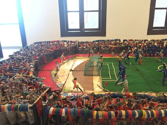 A l’étage du bâtiment principal, au cours d’une visite guidée obligatoire (que j’ai pour ma part trouvée très instructive), vous découvrirez, entre autre, maquettes, cartes,  vieilles photos, chaines et fer d’esclaves ainsi qu’ objets et autres documents lesquels donnent un éclairage sur la traite des esclaves, la présence portugaise à Ouidah ou encore la vie quotidienne dans le royaume d’Abomey.