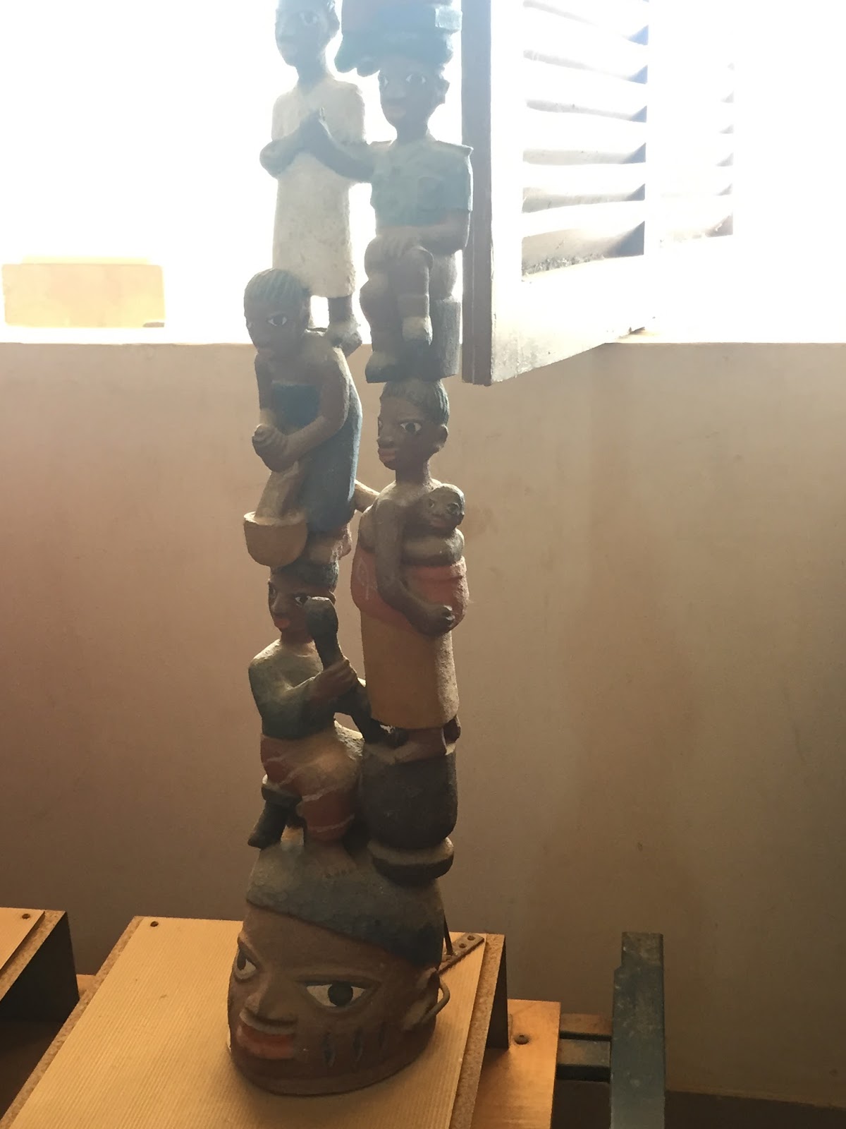 J’ai ensuite poursuivi mon  voyage artistique par une brève incursion en Afrique de l’est où j’ai pu apprécier le travail du peintre et sculpteur tanzanien, feu, George Lilanga . Connu pour ses sculptures (taillées en un seul bloc) en bois (caractéristiques du peuple makondé dont il était issu) ainsi que ses peintures de génie réalisées sur toile ou plaquette en bois.