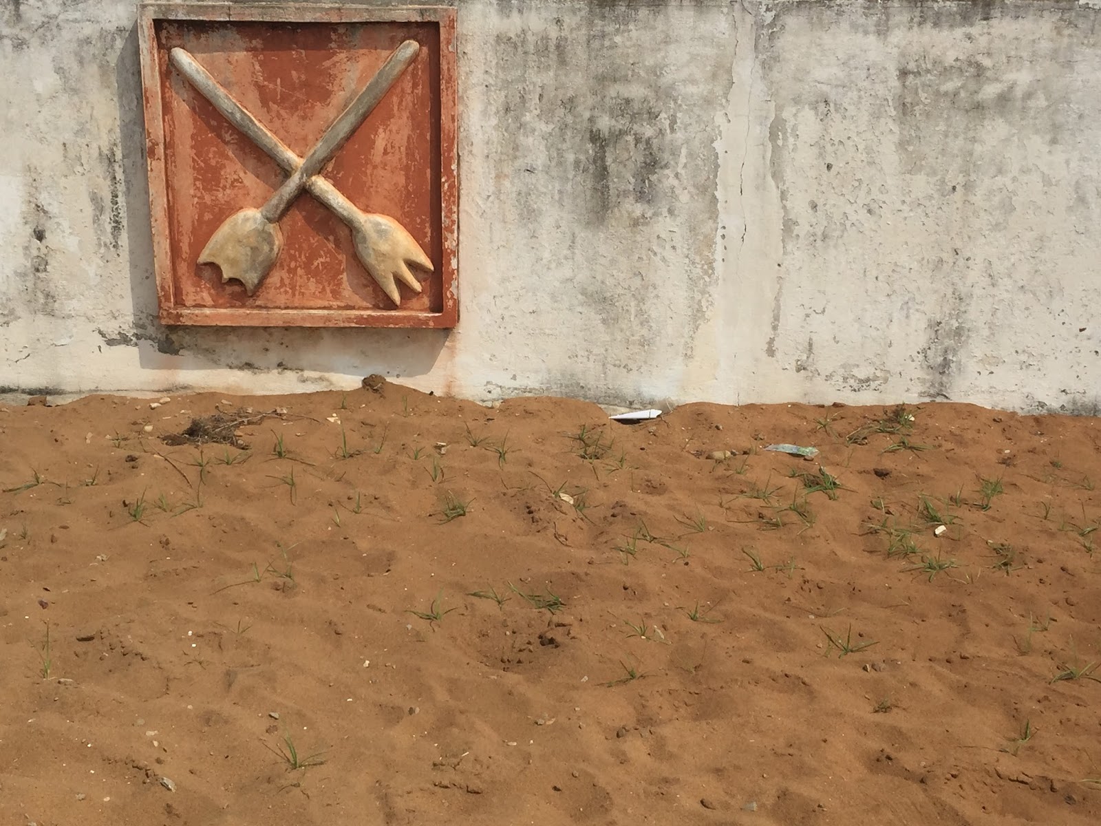 J’ai ainsi été émerveillée par le terrain de foot, avec ses tribunes, sa cage, et ses joueurs, de l’artiste béninois Serge Mikpon surnommé Aston !Â