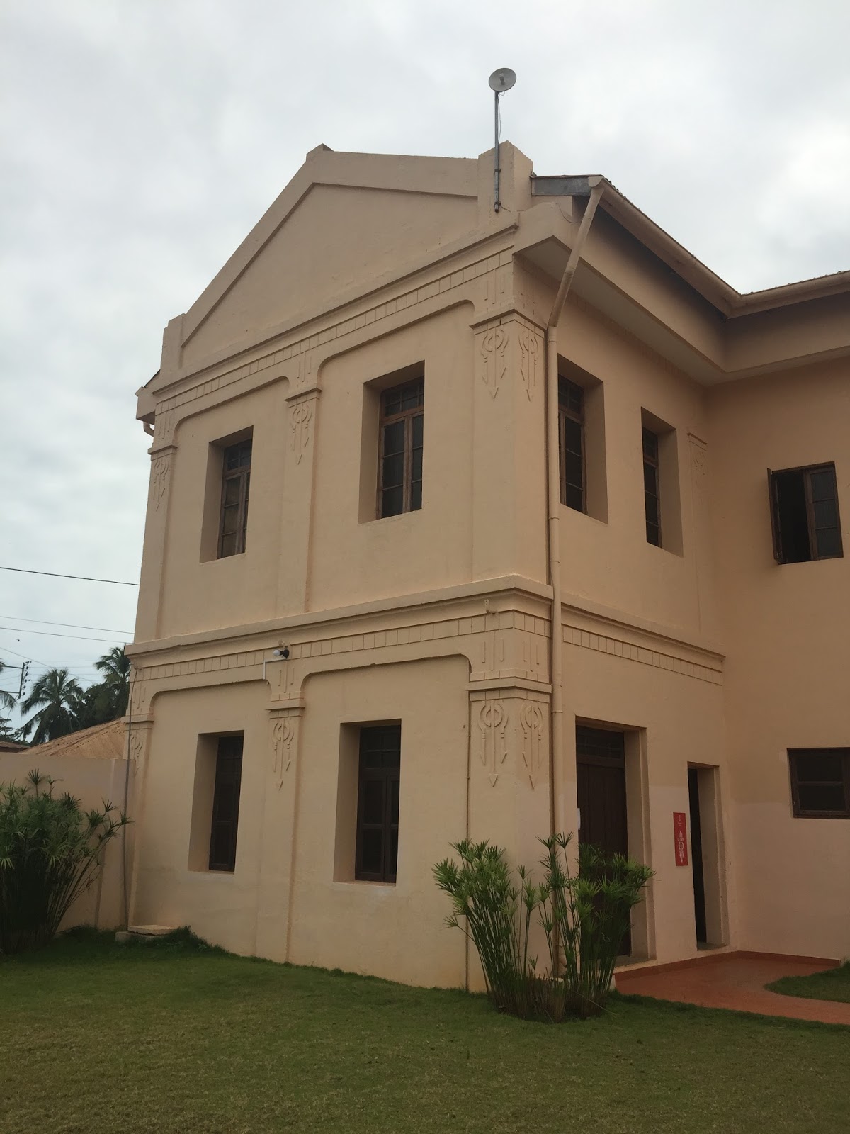 Mon regard s’est d’abord posé sur son joli fronton lequel, à l’instar de toutes les maisons coloniales construites sur la côte, porte le nom du propriétaire ainsi que la date de son édification (comme je vous l’avais déjà précisé dans l’article consacré à Aného, l’ancienne capitale togolaise).