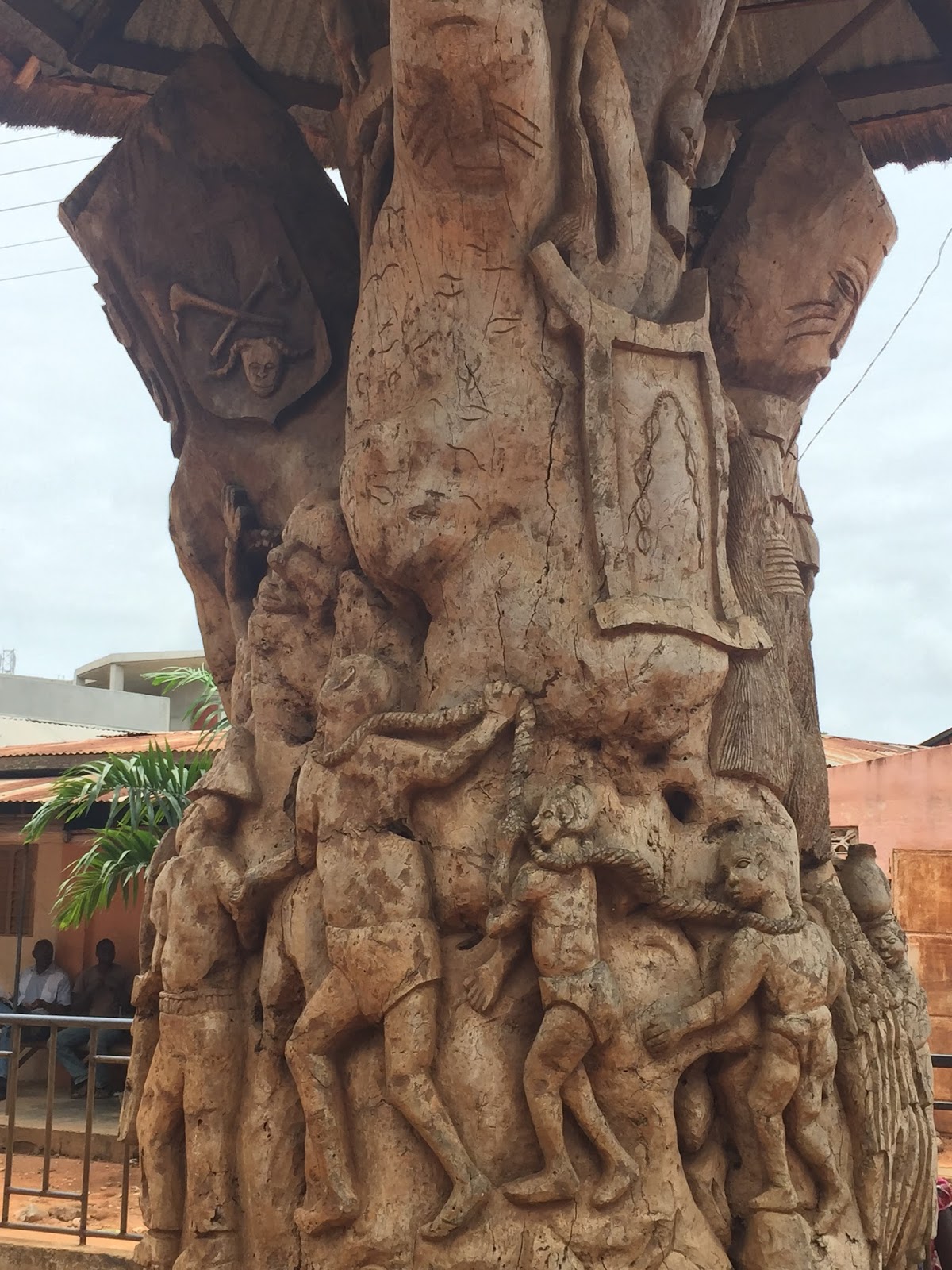 Le mémorial est, quant à lui, constitué d’ une stèle, haute de plusieurs mètres, sur laquelle sont représentées des scènes racontant l’esclavage à Ouidah.