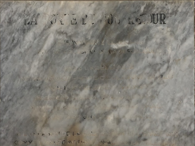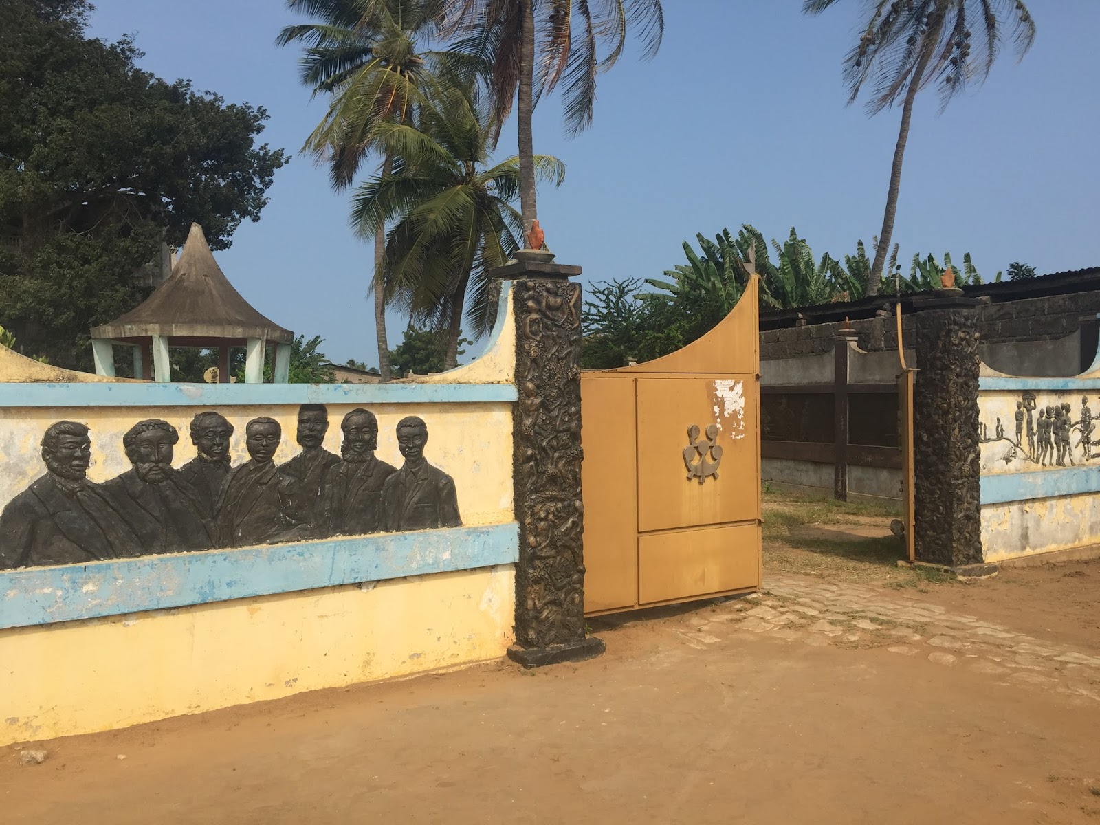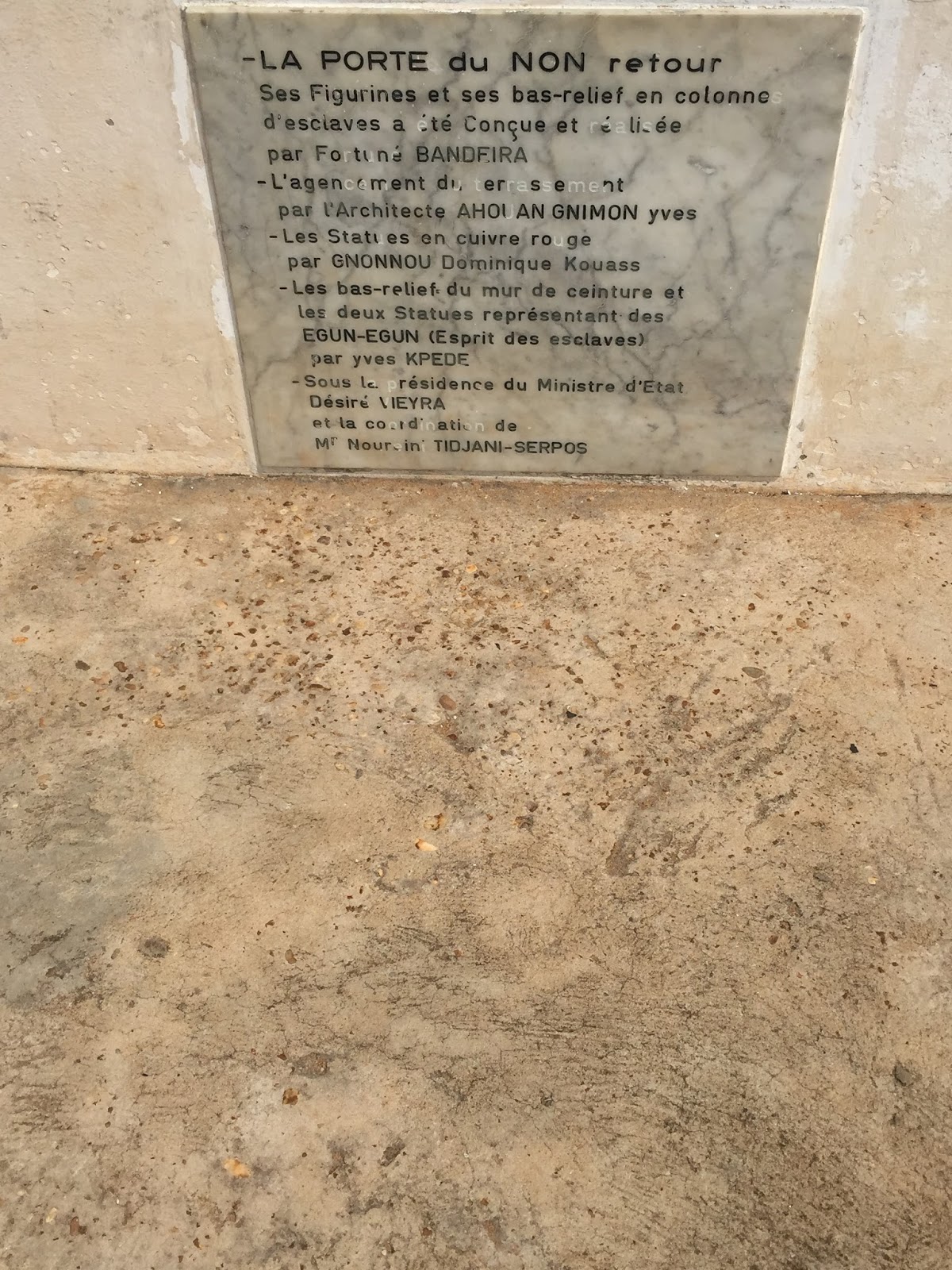 J’ai ainsi été impressionnée par ces grandes statues d’Amazones, ces symboles de dieux vaudou ainsi que ces représentations des rois d’Abomey (dont la très active participation  dans la traite ne souffre pas la discussion), se succédant de part et d’autre de la route jusqu’à à la monumentale porte de Non Retour, dernière étape  de la route des esclaves.
