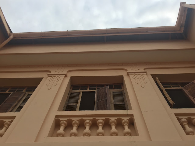 Mon regard s’est d’abord posé sur son joli fronton lequel, à l’instar de toutes les maisons coloniales construites sur la côte, porte le nom du propriétaire ainsi que la date de son édification (comme je vous l’avais déjà précisé dans l’article consacré à Aného, l’ancienne capitale togolaise).