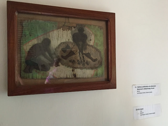 La seconde salle, quant à elle, s’attache,  à travers tableaux, statuettes, sculptures et tentures, à retracer l’histoire passée du Bénin entre esclavage, temps des royaumes d’Abomey, colonisation et Indépendance du pays.