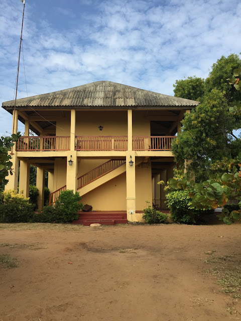 C’est, en effet, au milieu d’une végétation luxuriante (où les cocotiers règnent en maître) et face à une plage (dont les eaux, d’un bleu ensorcelant, attirent les touristes) que se dresse une majestueuse bâtisse coloniale blanche dont les pièces ont,  depuis, été reconverties en chambre d’hôtel !