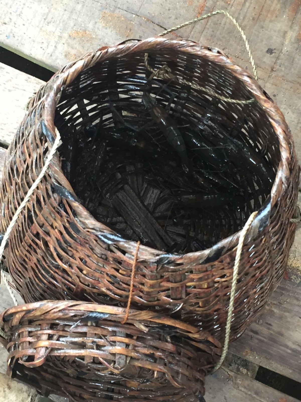 un panier spécifique pour la pêche à l’écrevisse retiré de l’eau par les pêcheurs