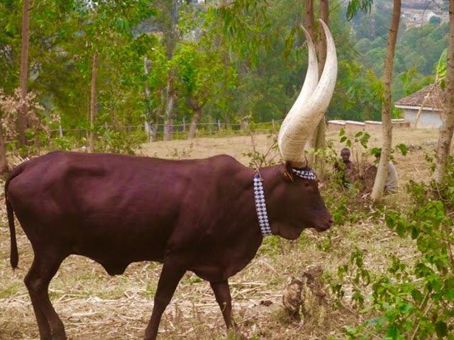 | vache Inyambo, enclos du palais royal de Nyanza, Rwanda |