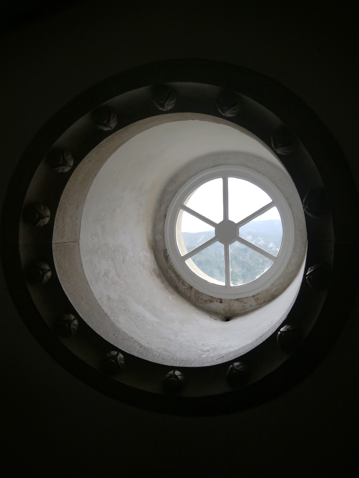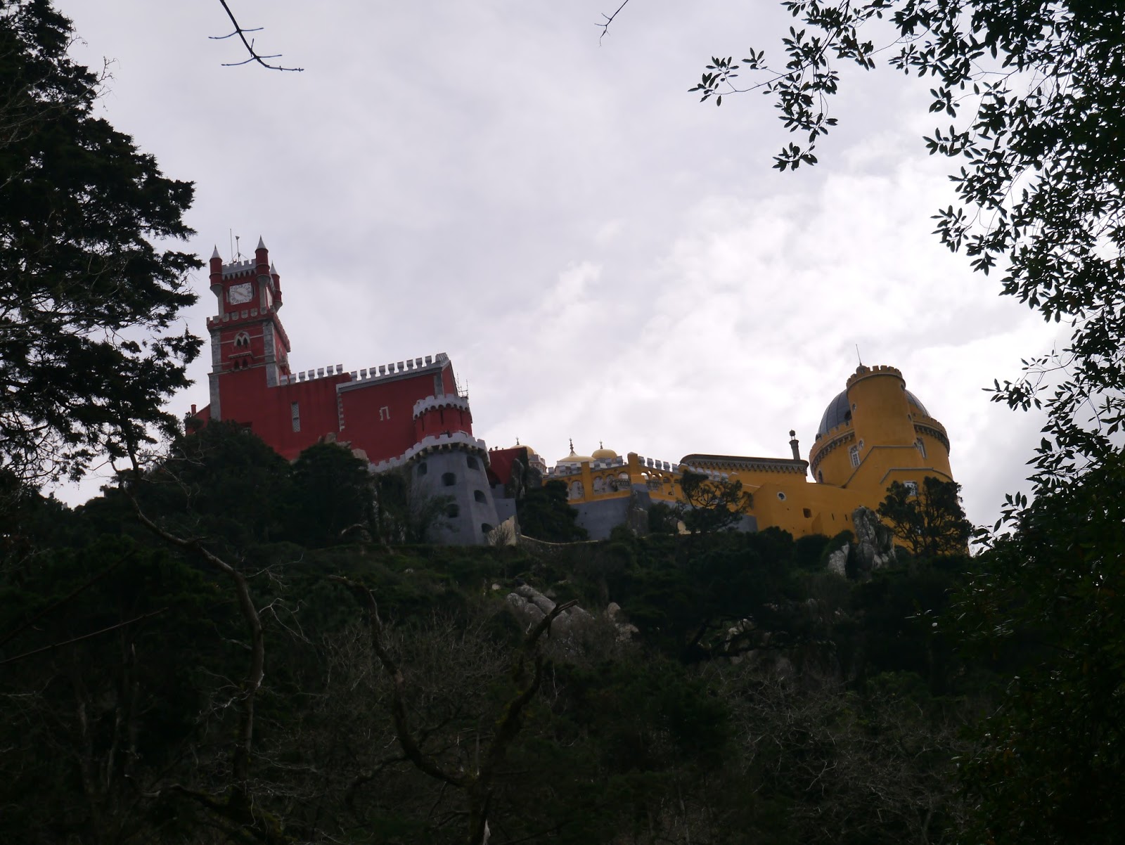 Après m’être garée dans le parking situé (à environ deux kilomètres du centre ville) très en contrebas du Palais de la Pena, j’ai donc débuté mon ascension, à pied (ayant manqué de peu le minibus assurant la liaison depuis l’entrée des lieux jusqu’au palais), vers ce dernier.