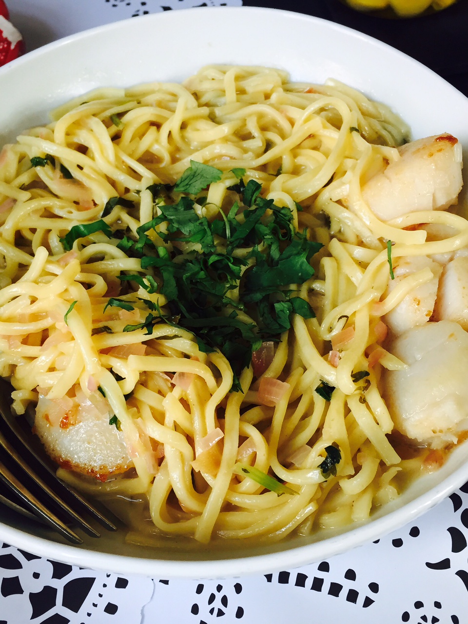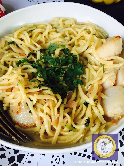 avant de savourer les excellentes linguini au vin blanc et aux saint jacques poêlées
