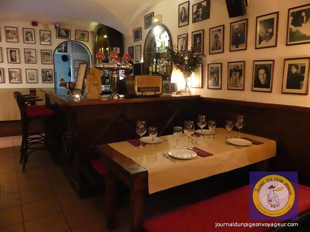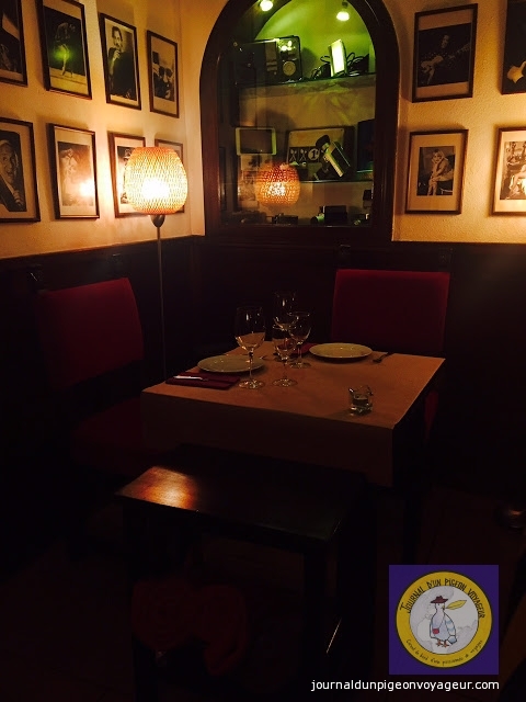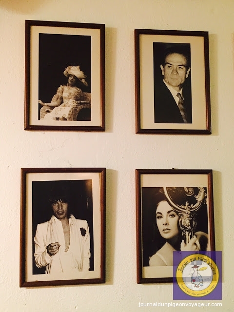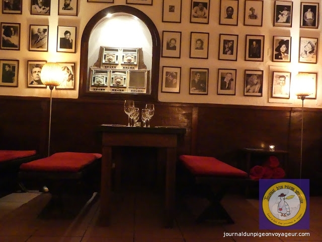 Une fois le seuil de la porte franchi, c’est un univers cosy et romantique à souhait, avec couleur rouge (ma préférée), lumière tamisée ainsi que portraits (essentiellement d’acteurs) en noir et blanc, accrochés aux murs, qui  vous attend.