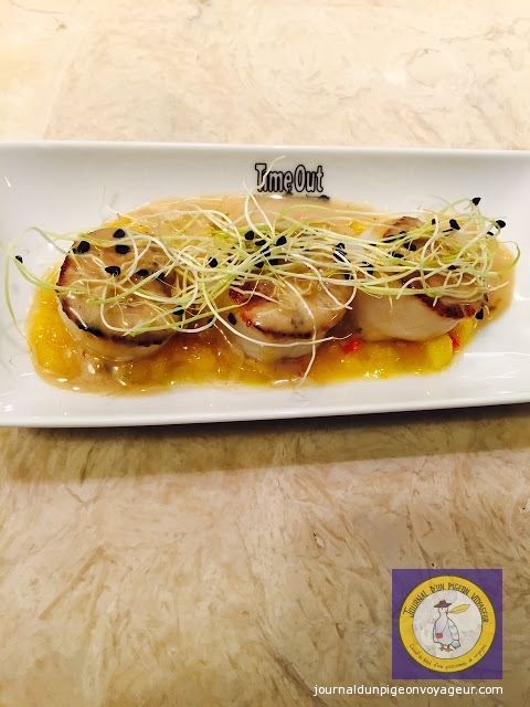 et les délicieuses saint jacques poêlées avec leur condiment à la mangue.