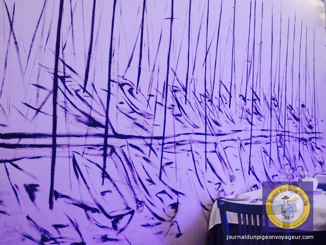 Un choix que je n’ai pas eu à regretter  dans la mesure où cette salle, située à l’étage et dont la décoration (par ses couleurs, tableaux et pagaies) rappelle la mer, offre un joli panorama sur les docks et le pont du 25 avril.