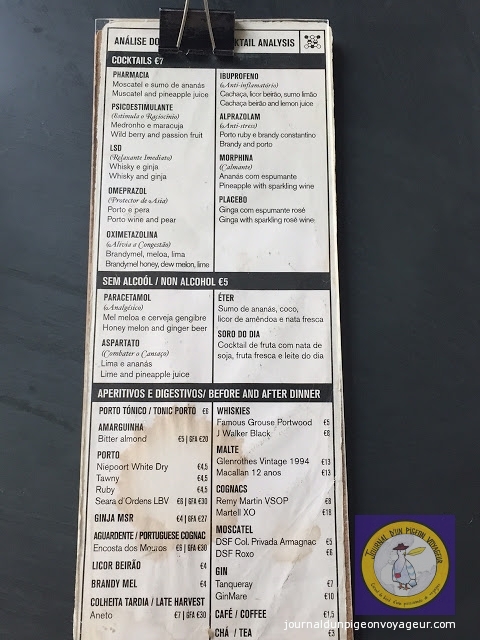 Ainsi, la carte des cocktails rappelle, par sa forme, les fiches tenues par les médecins tandis que les breuvages qui y sont proposés portent les noms, évocateurs, d’Ibuprofeno, Morphina, Placebo et même LSD !