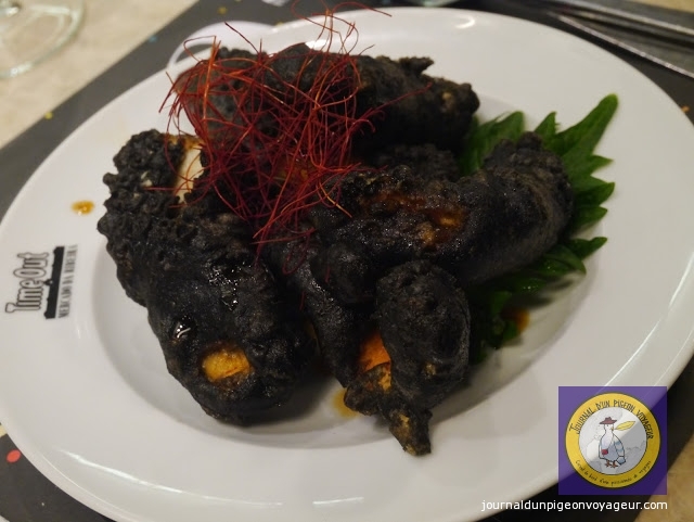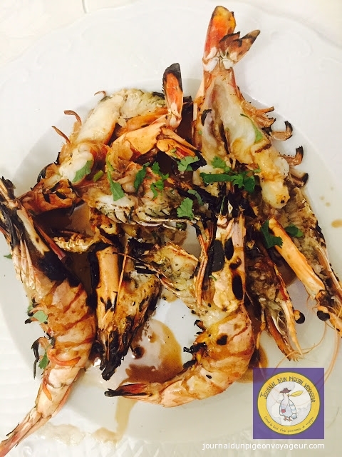 puis aux crevettes tigrées du Mozambique (ancienne colonie portugaise), parfaitement grillées et subtilement assaisonnées, accompagnées d’un