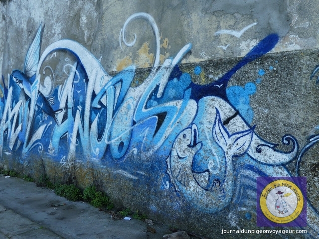 Je dis en théorie car il y a de fortes chances que vous vous laissiez captiver par les œuvres de streetart, le panorama exceptionnel sur le pont du 25 avril et la rive d’en face, le spectacle de quelques pêcheurs, l’envol des mouettes et que sais je encore.