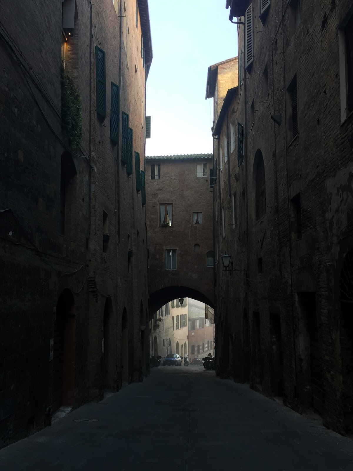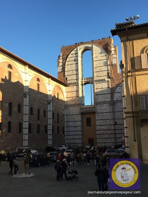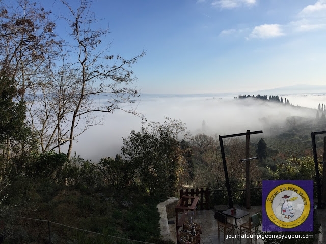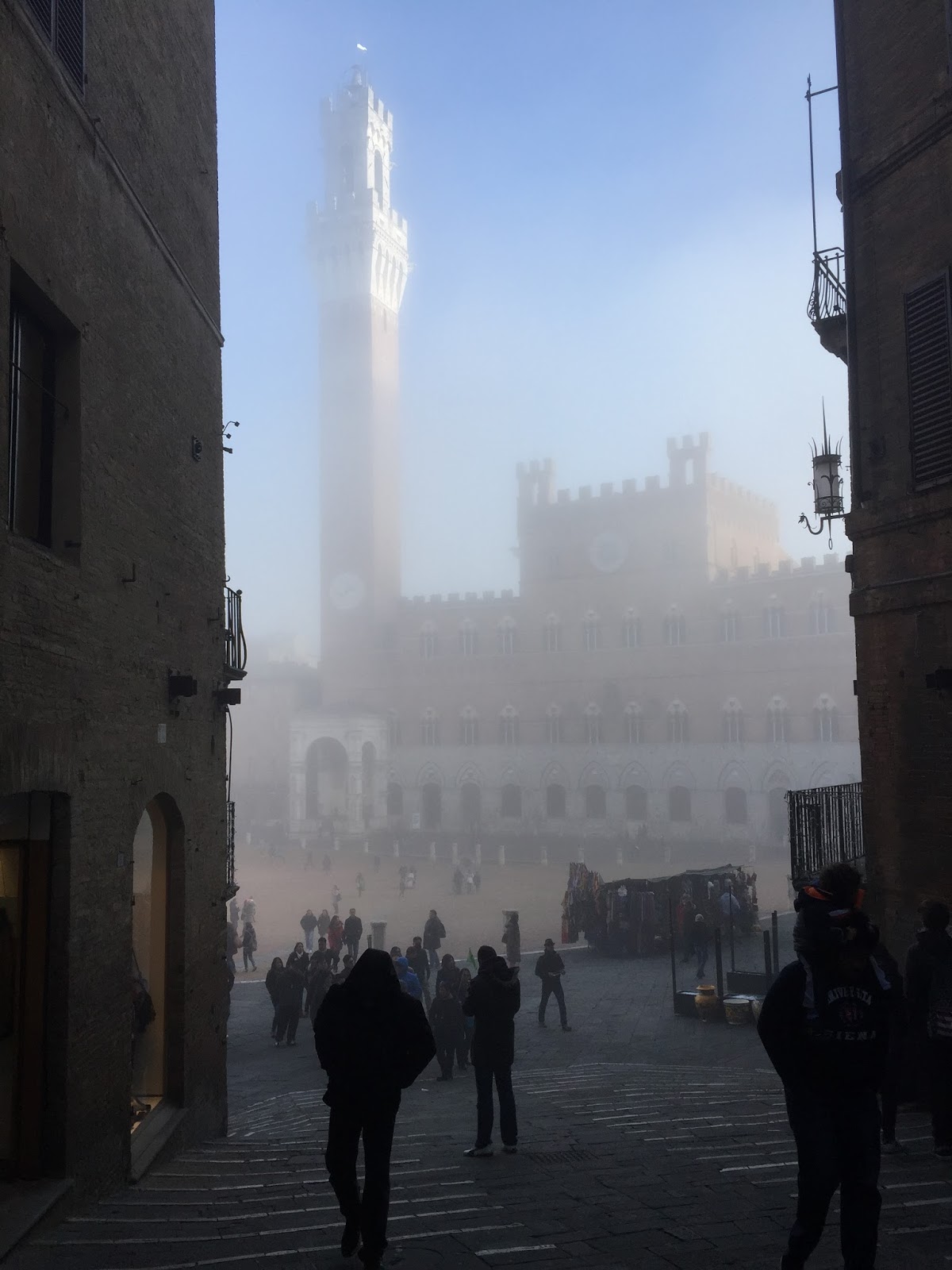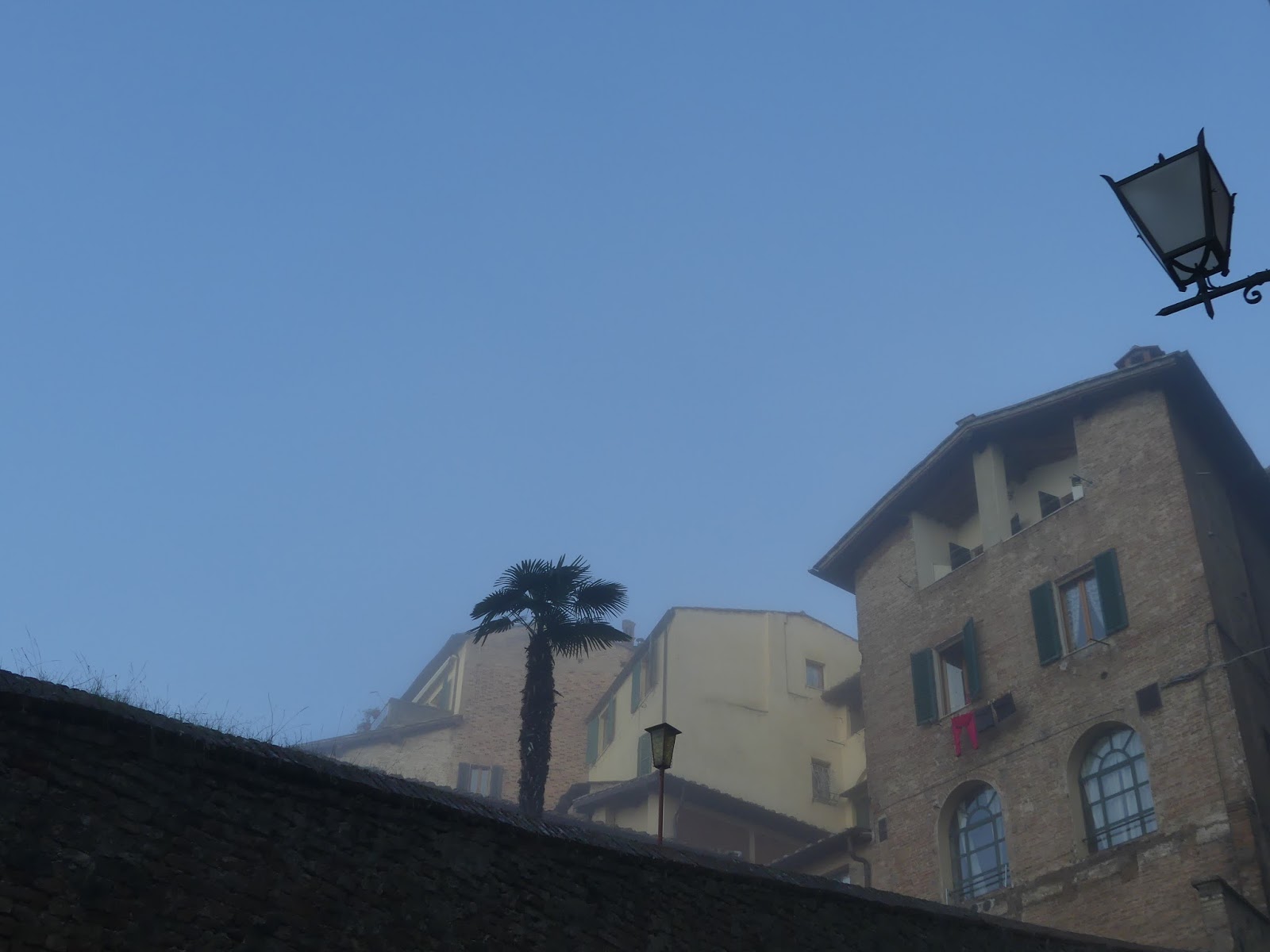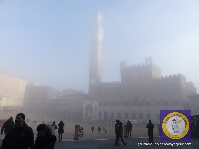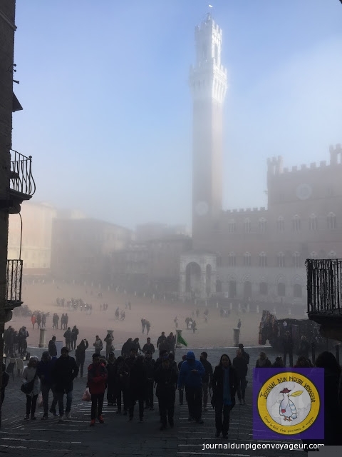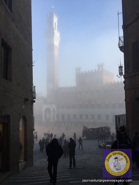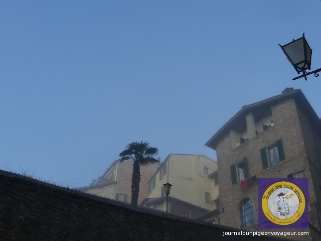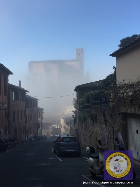 C’est par un ciel gris, un vent glacial et un brouillard indescriptible que je suis arrivée, en fin de matinée, à Sienne.