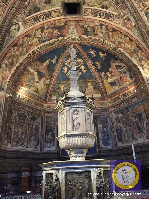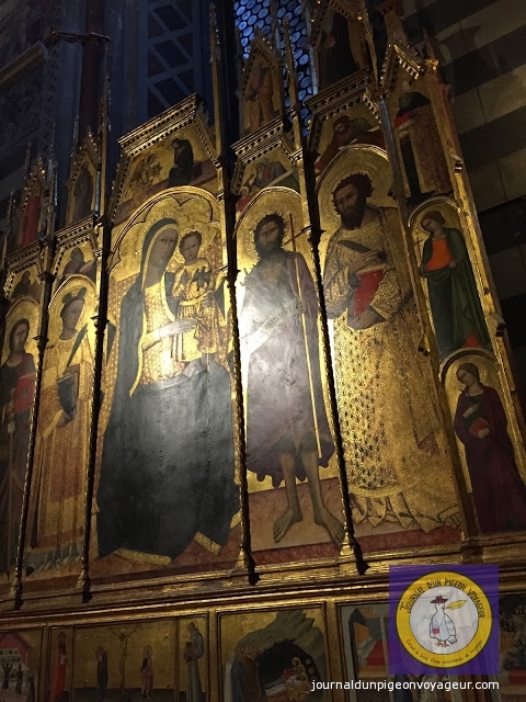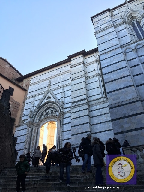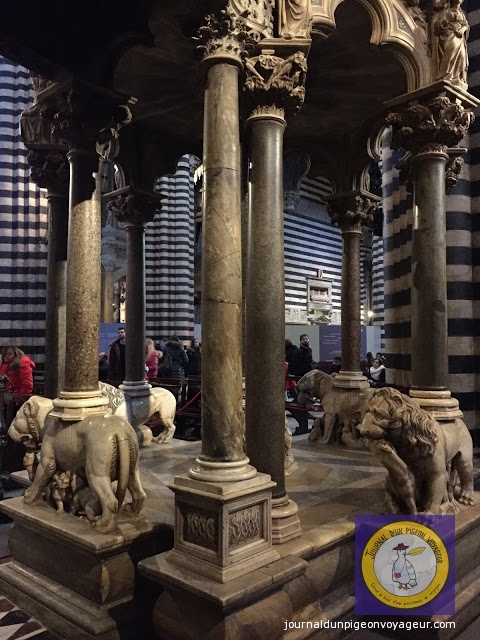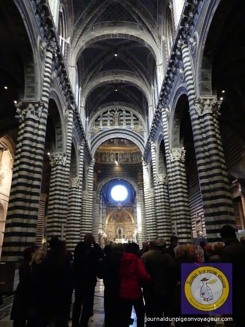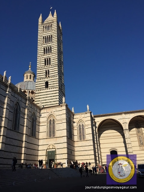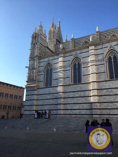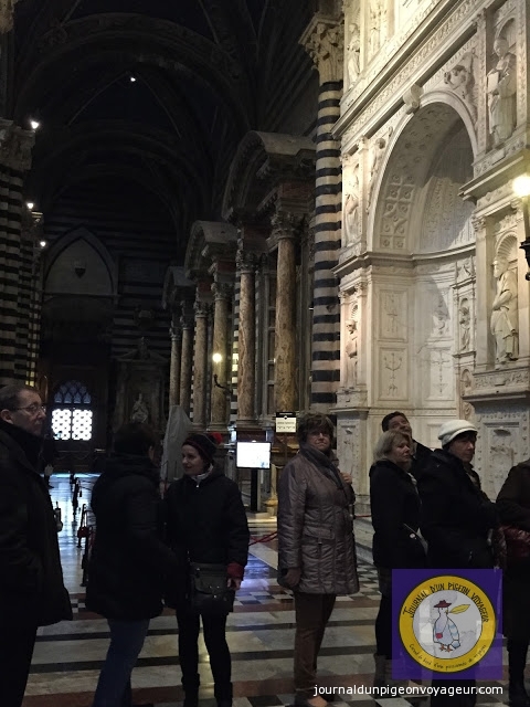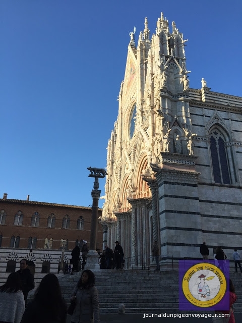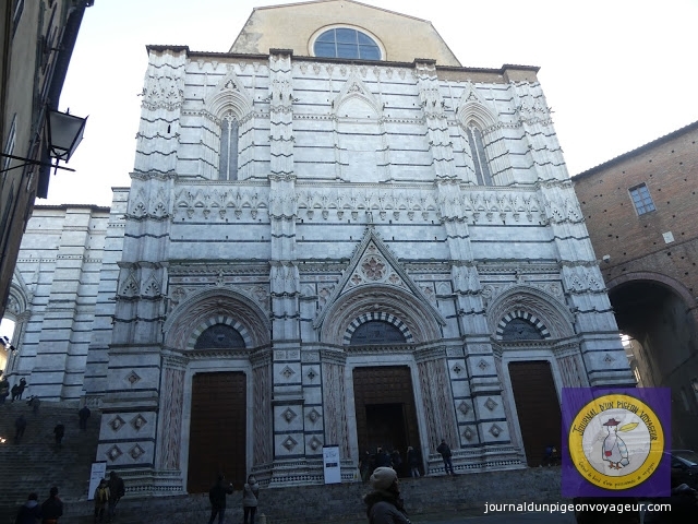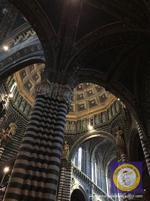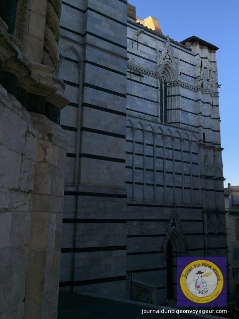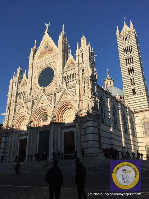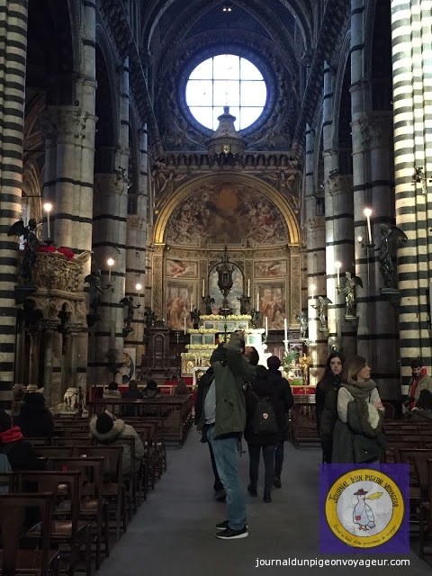 Dominant la ville, le Duomo (à l’architecture en partie romane et gothique), reconnaissable à son marbre blanc et noir, a constitué ma seconde visite à Sienne.