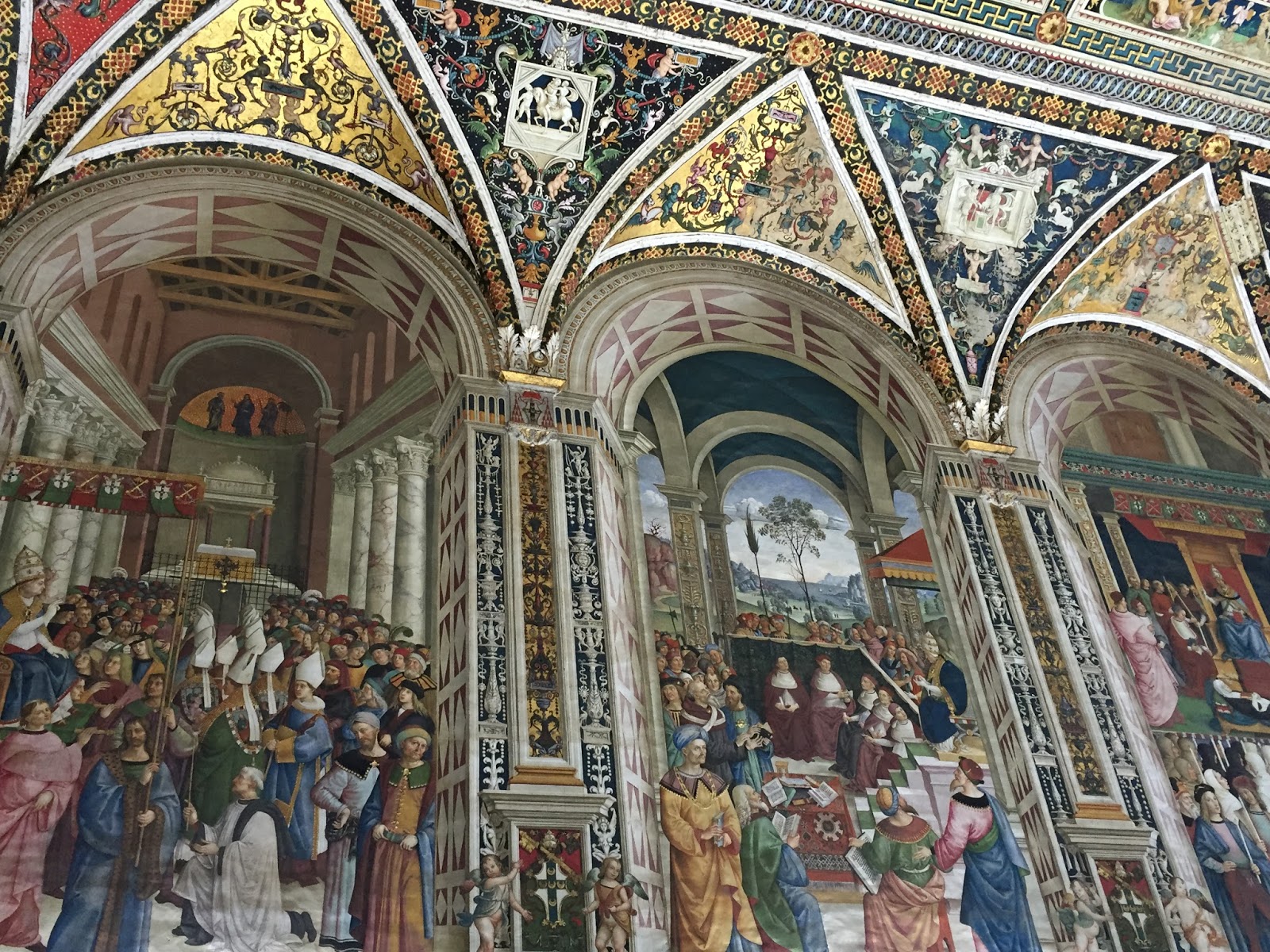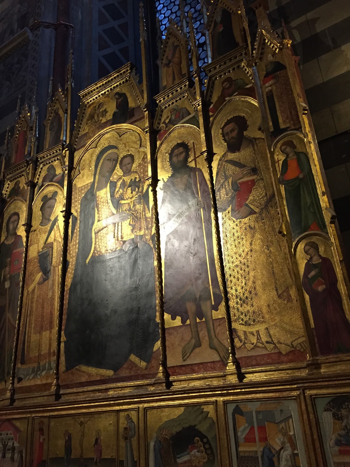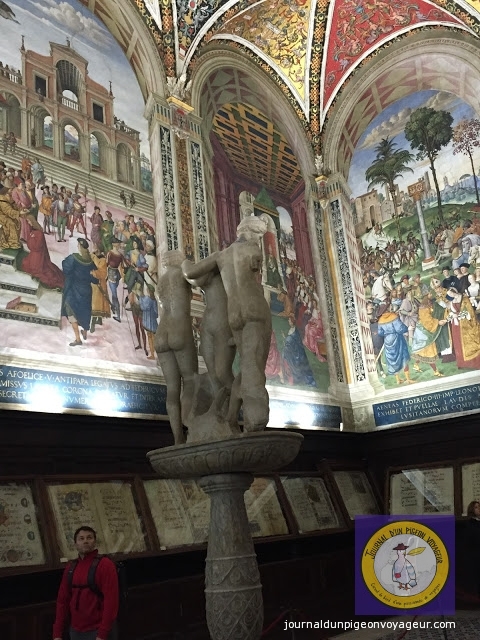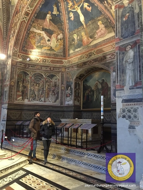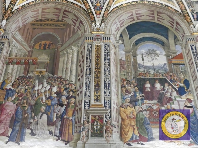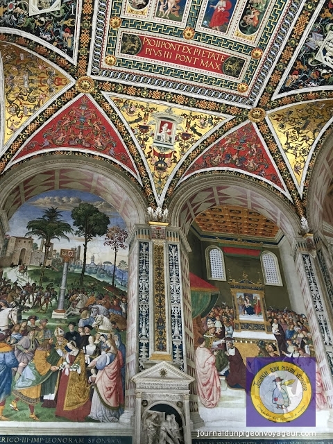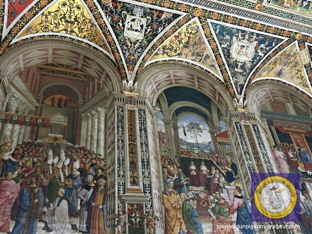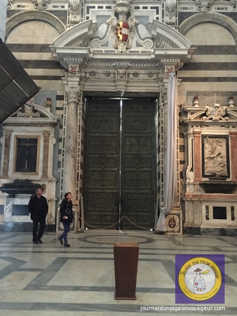 Dominant la ville, le Duomo (à l’architecture en partie romane et gothique), reconnaissable à son marbre blanc et noir, a constitué ma seconde visite à Sienne.
