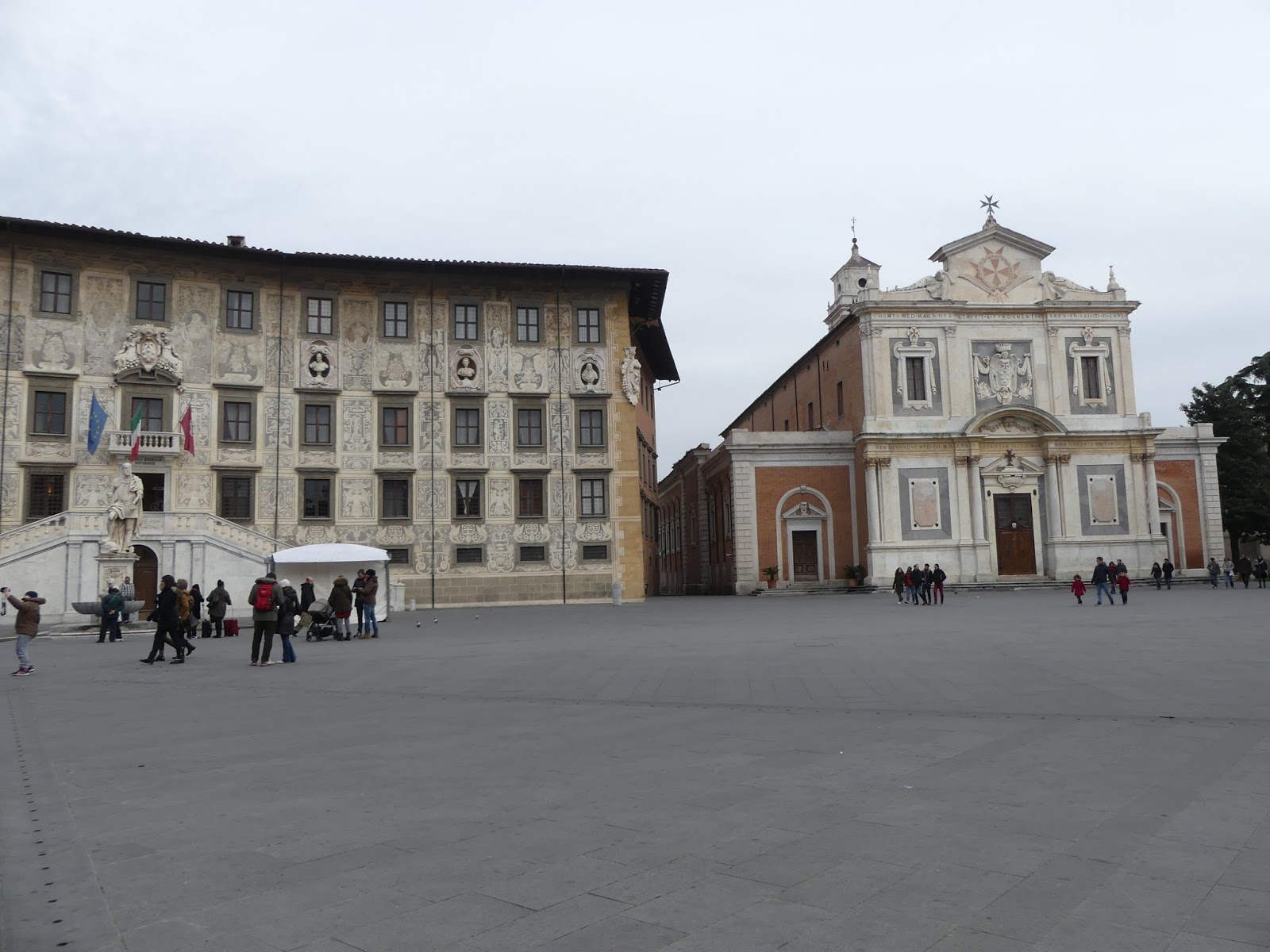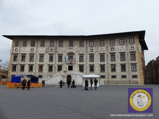 Une très belle place se distinguant, notamment, par la beauté de la stylisée façade (intégrant bustes de grands ducs et décorations)  du Palazzo della Carovana dei Cavaleiri.
