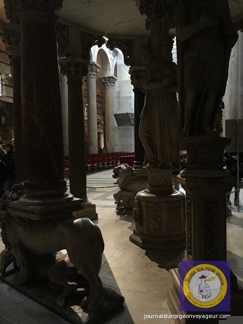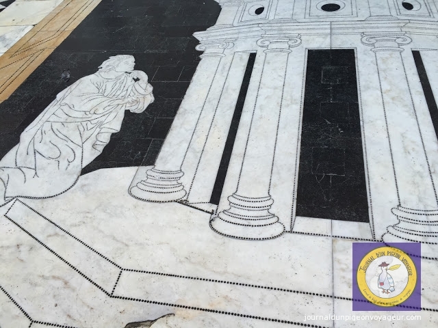 De la cathédrale, elle même, je garde, notamment, en mémoire les, fresques en marbre couvrant le sol,