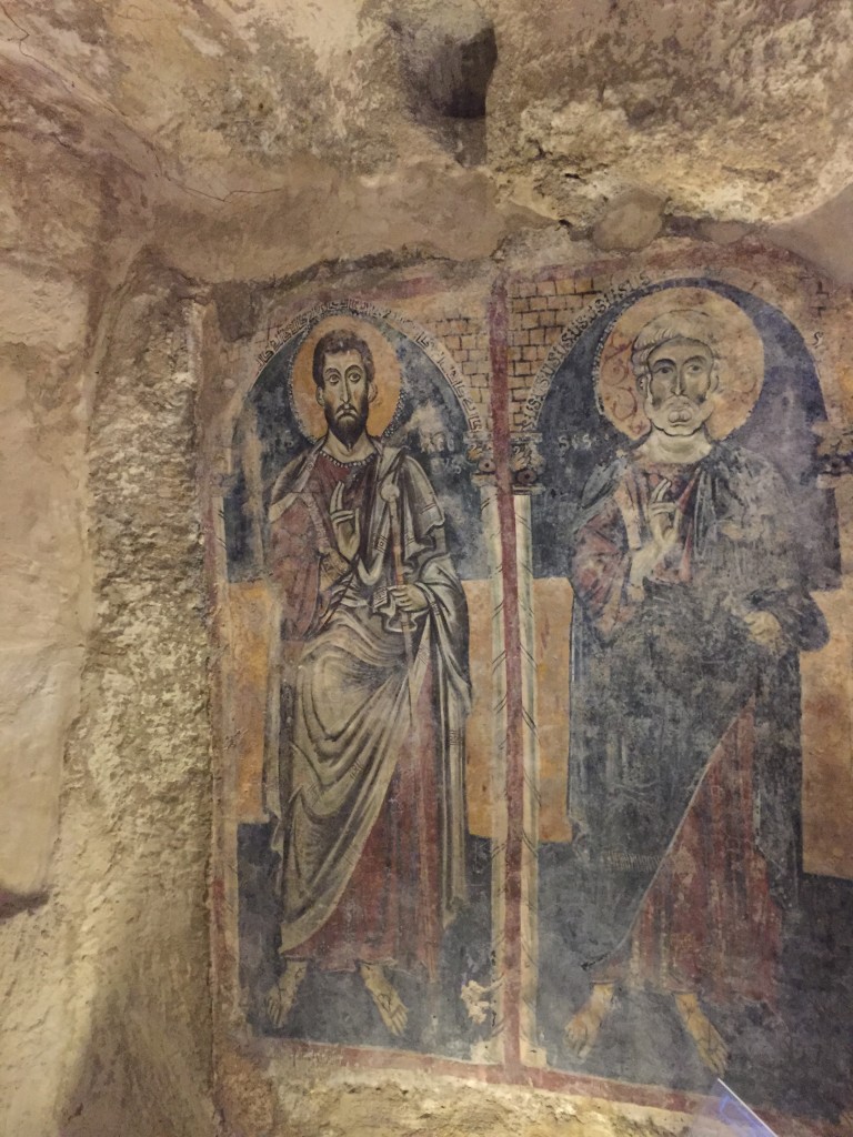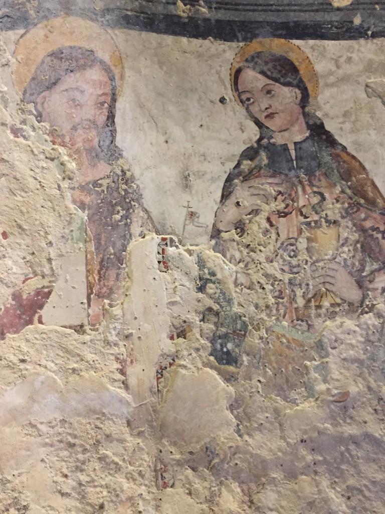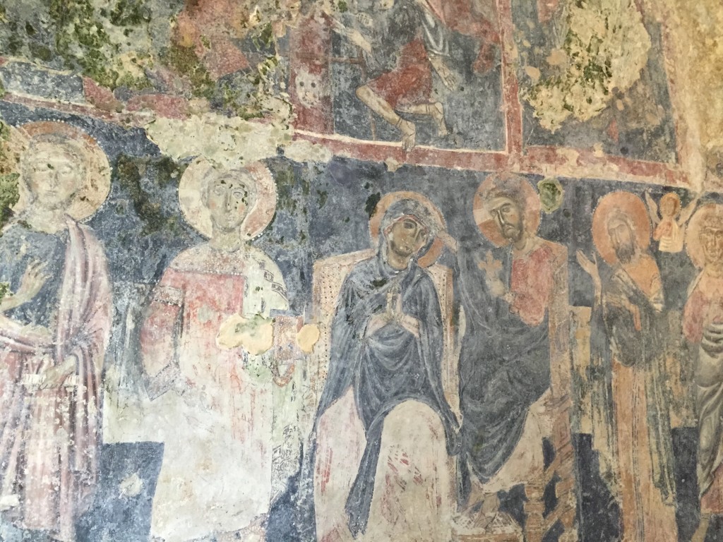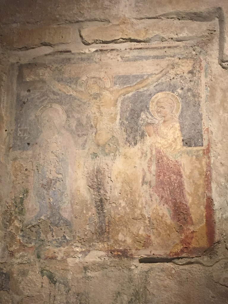 Je garde, ensuite, un souvenir ému des fresques, représentant notamment le Christ Pantocrator, Saint André et Saint Jean Baptiste, de la crypte San Giovanni in Monteronne à laquelle l’on accède, via un corridor, en traversant l’église Santa Maria de Idris dont je vous parlais précédemment.Â