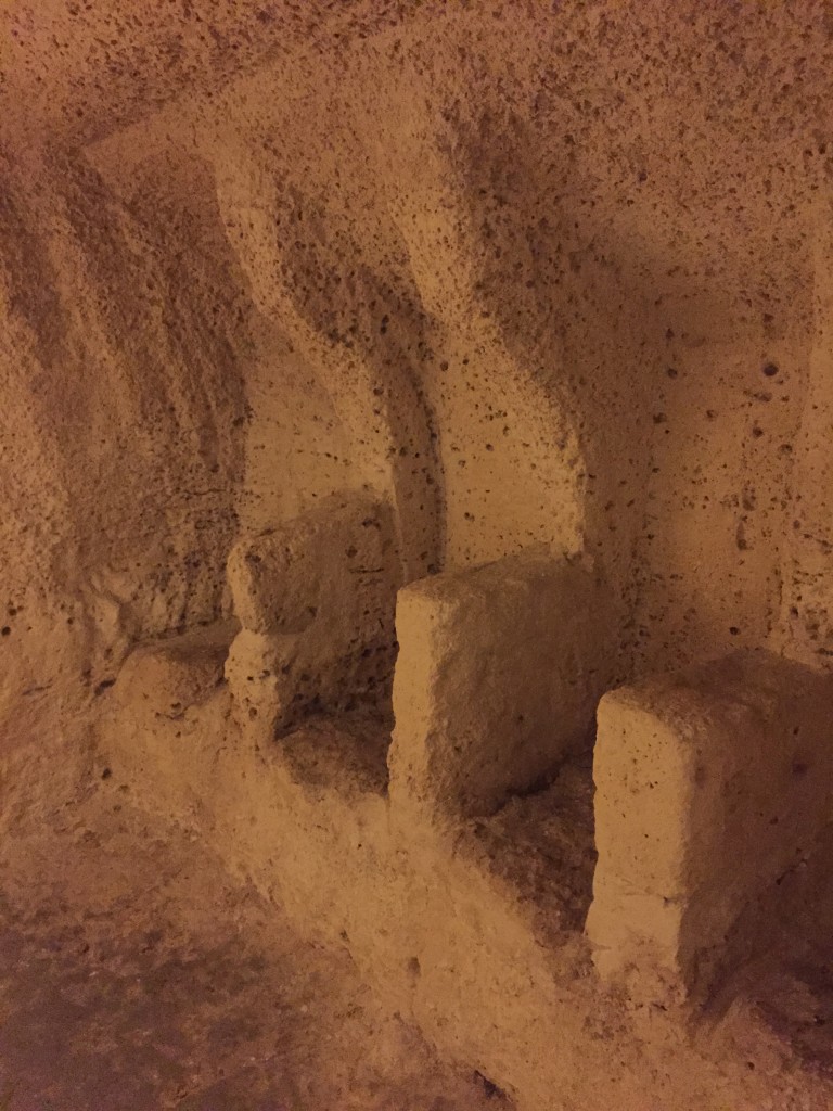 La majesté de ses labyrinthes de grottes, superposées sur plusieurs niveaux,  est encore plus éblouissante lorsque le soleil donne une couleur miel à cette ville souterraine.