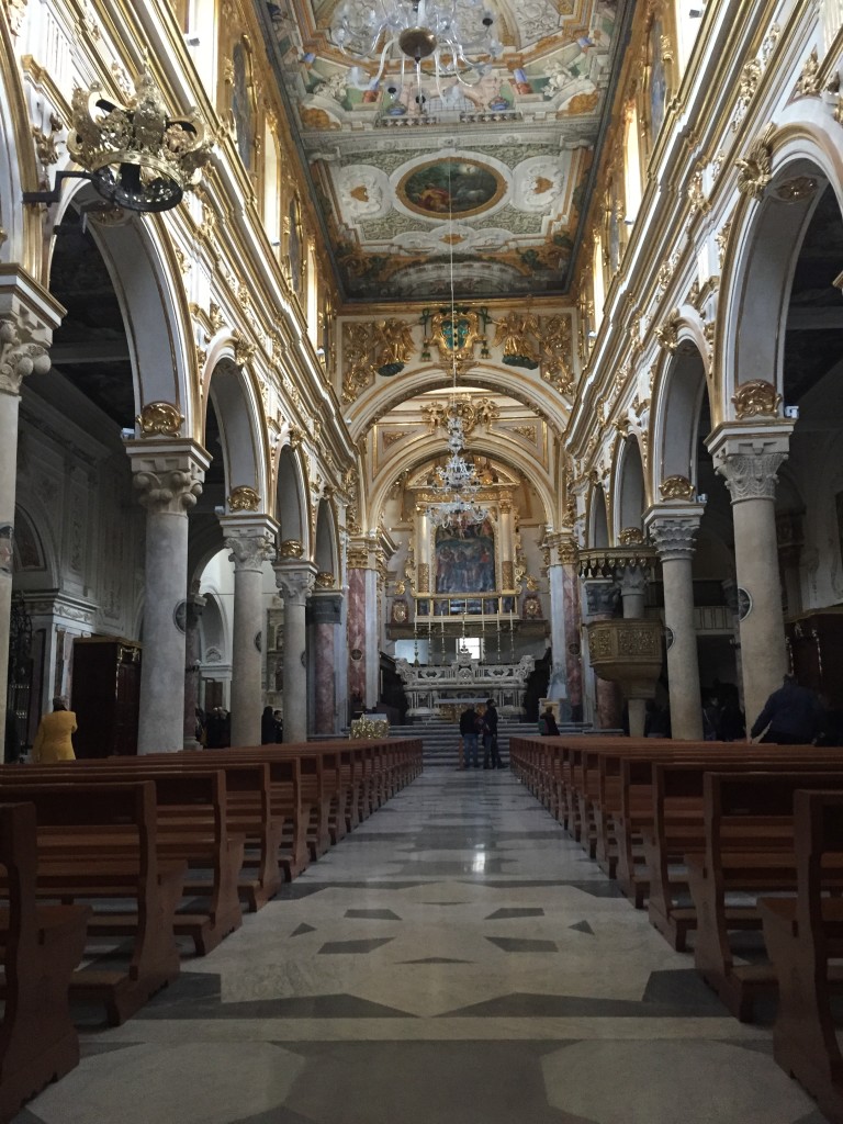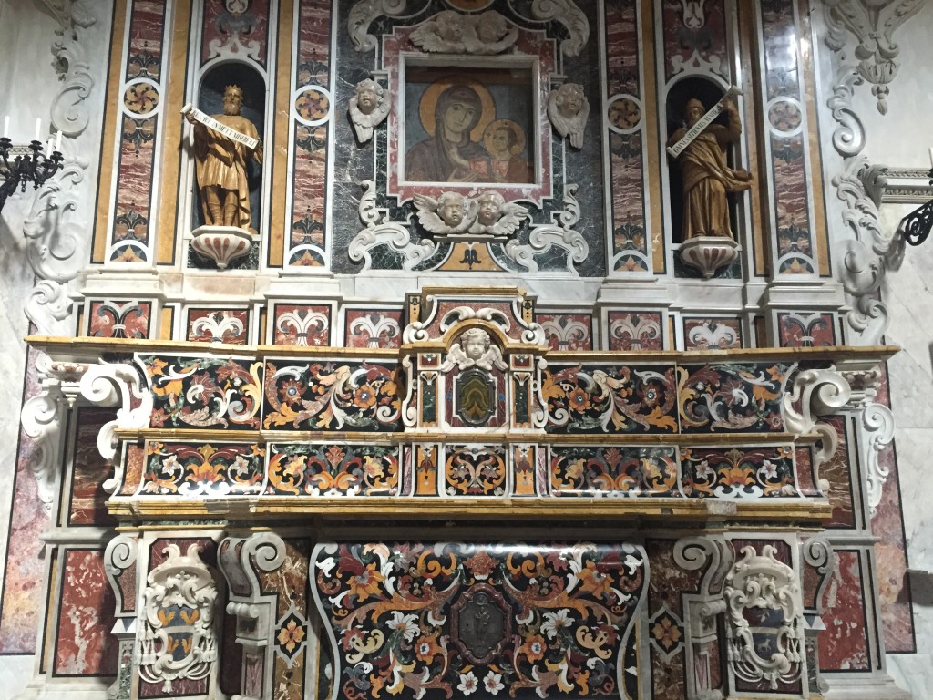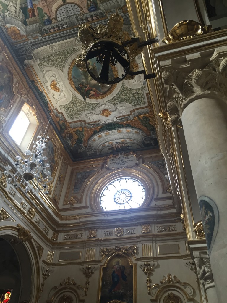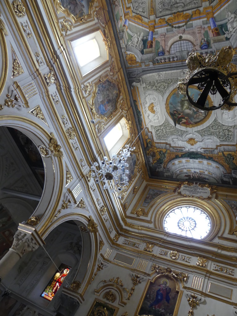 J’ai, pour ma part, été émerveillée par l’éclat et la riche décoration de ses plafonds, la beauté de ses fresques (dont une figurant une superbe Sainte Vierge) ainsi que ses magnifiques chapelles. Â
