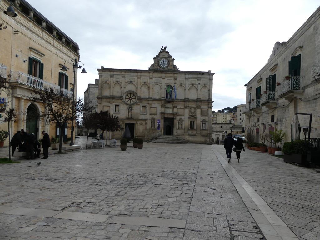 Un peu plus en contrebas, la piazza San Pietro Caveoso (où se dresse l’église éponyme bâtie à flanc de ravin)