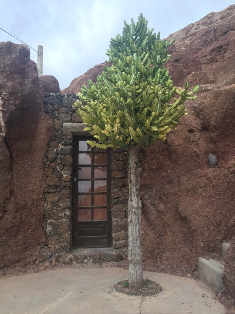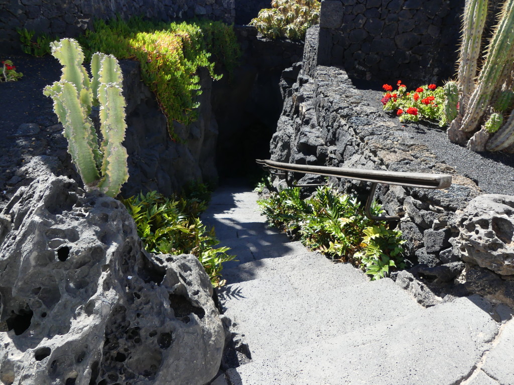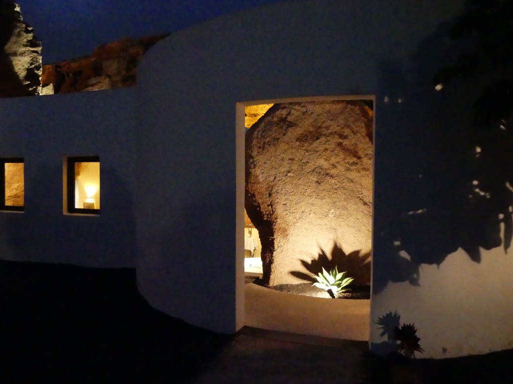 Une réalisation d’ une exceptionnelle originalité dans la mesure où l’artiste a, ici, aménagé deux jaméos (ou ouvertures) situées dans le tunnel  volcanique, en partie effondré, formé suite à l’éruption du volcan de La Corona.